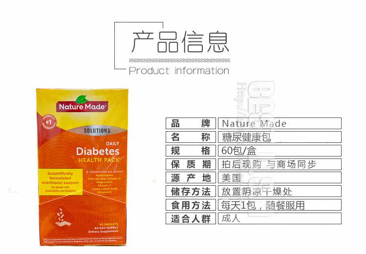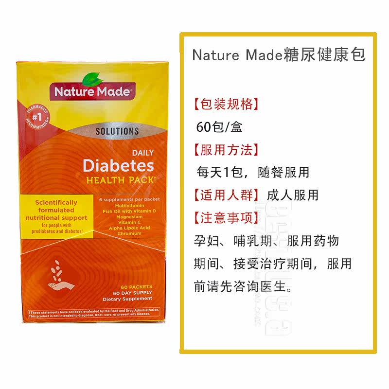Природа, сделанная диабетом, набор пакетов здоровья диабета 60 пакетов Композитные витаминные элементы следов Американское подлинное место