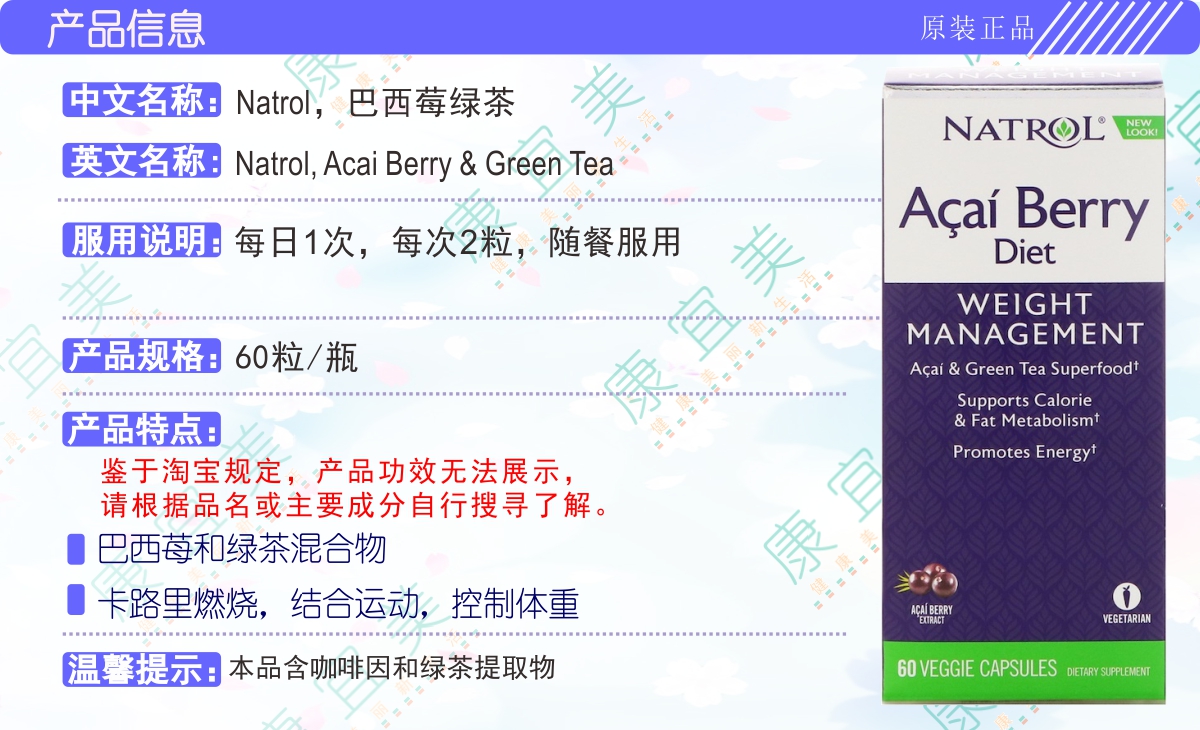 Эффективный период Натрол Бразильский ягода ягода ягода ягода зеленого чая Управление весом 60 капсулы