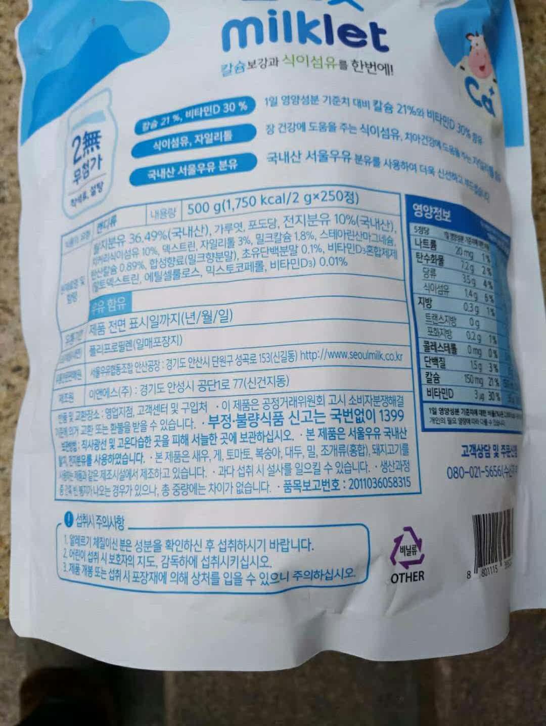 Корейская детская клетчатка Улучшенные таблетки для кальциевого молока оригинальное молоко молоко