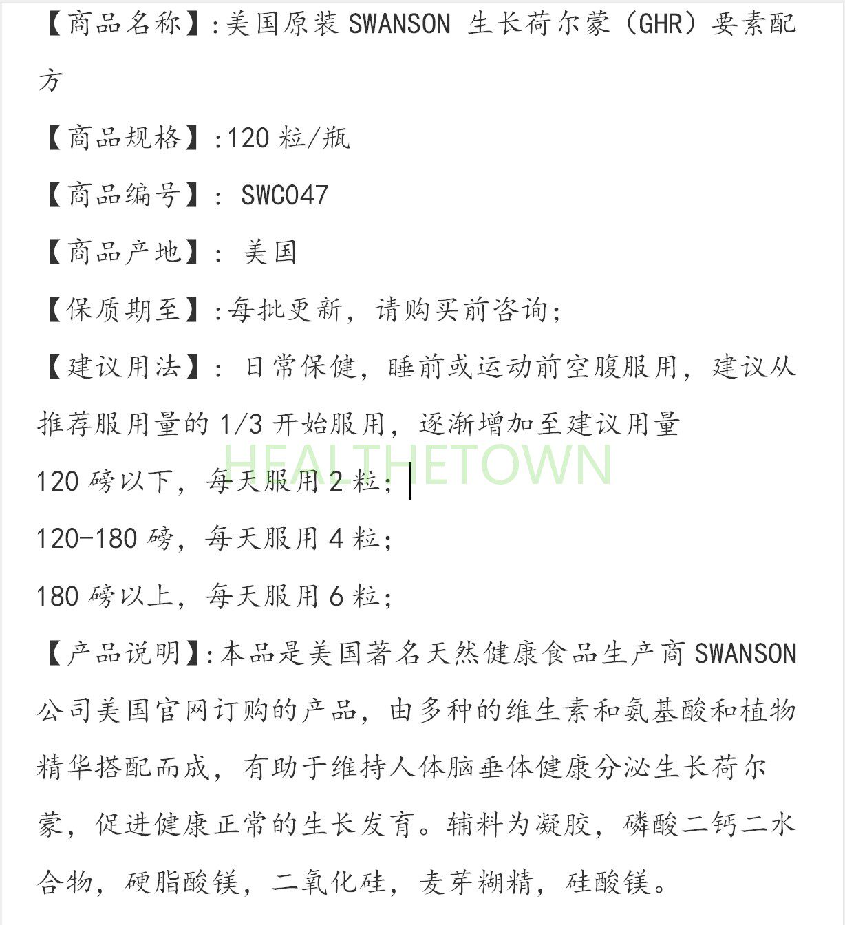 Содействовать здоровому росту 120 капсул для оригинальной формулы гормонального (GHR) роста Swanson (GHR)