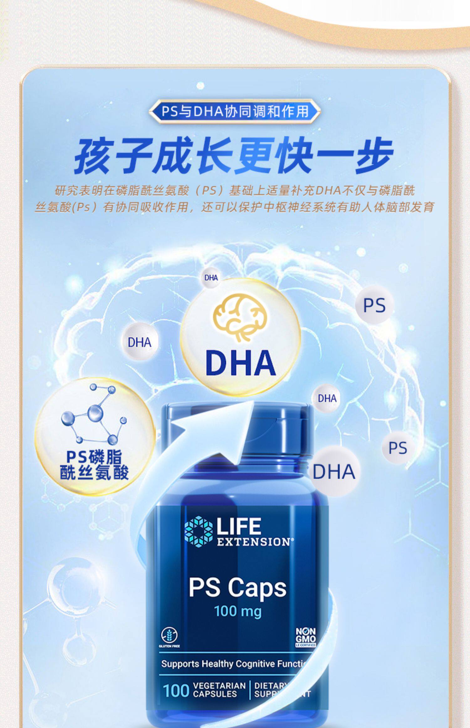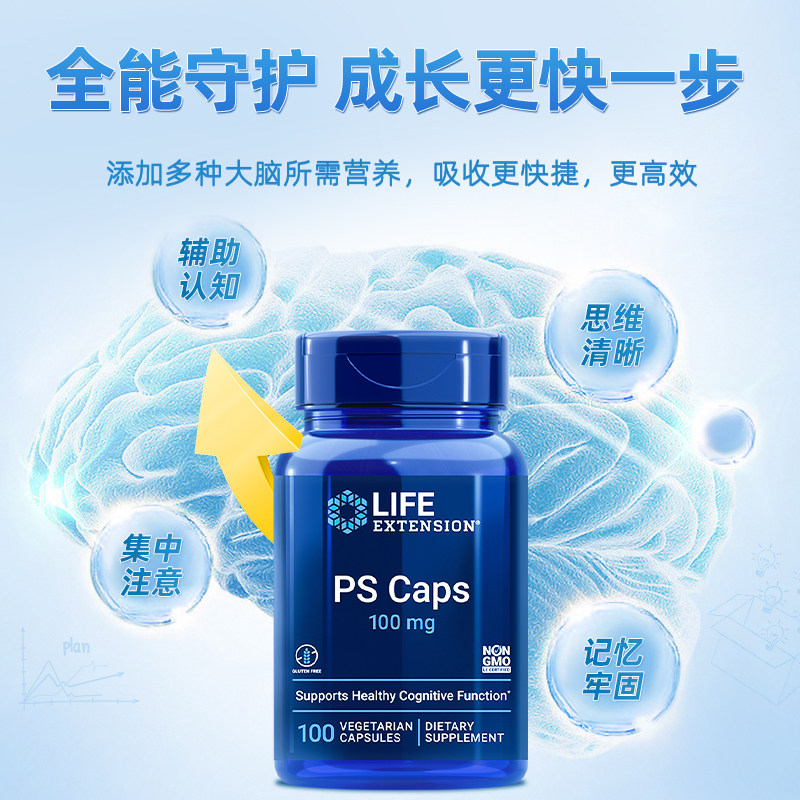 Расширение жизни фосфолипидсин PS Caps Memory Memory Memory Kids и подростки.