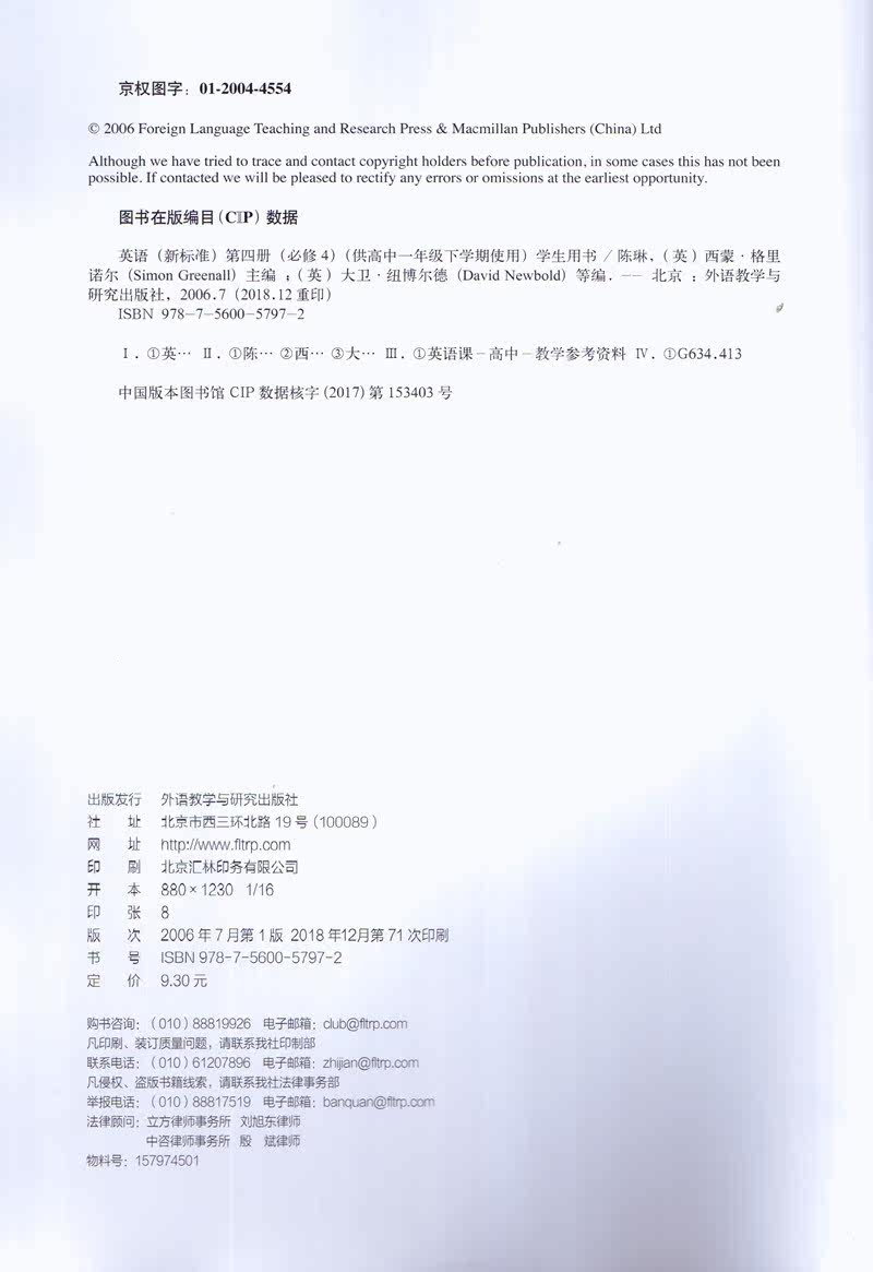 Подлинная бесплатная доставка иностранной исследовательской общества Средняя школа английская четвертая книга Учебник Gao Di -Semester Иностранные исследования 4 Учебник Учебник Стандартный экспериментальный учебник из учебника по иностранным языкам и исследовательской прессе