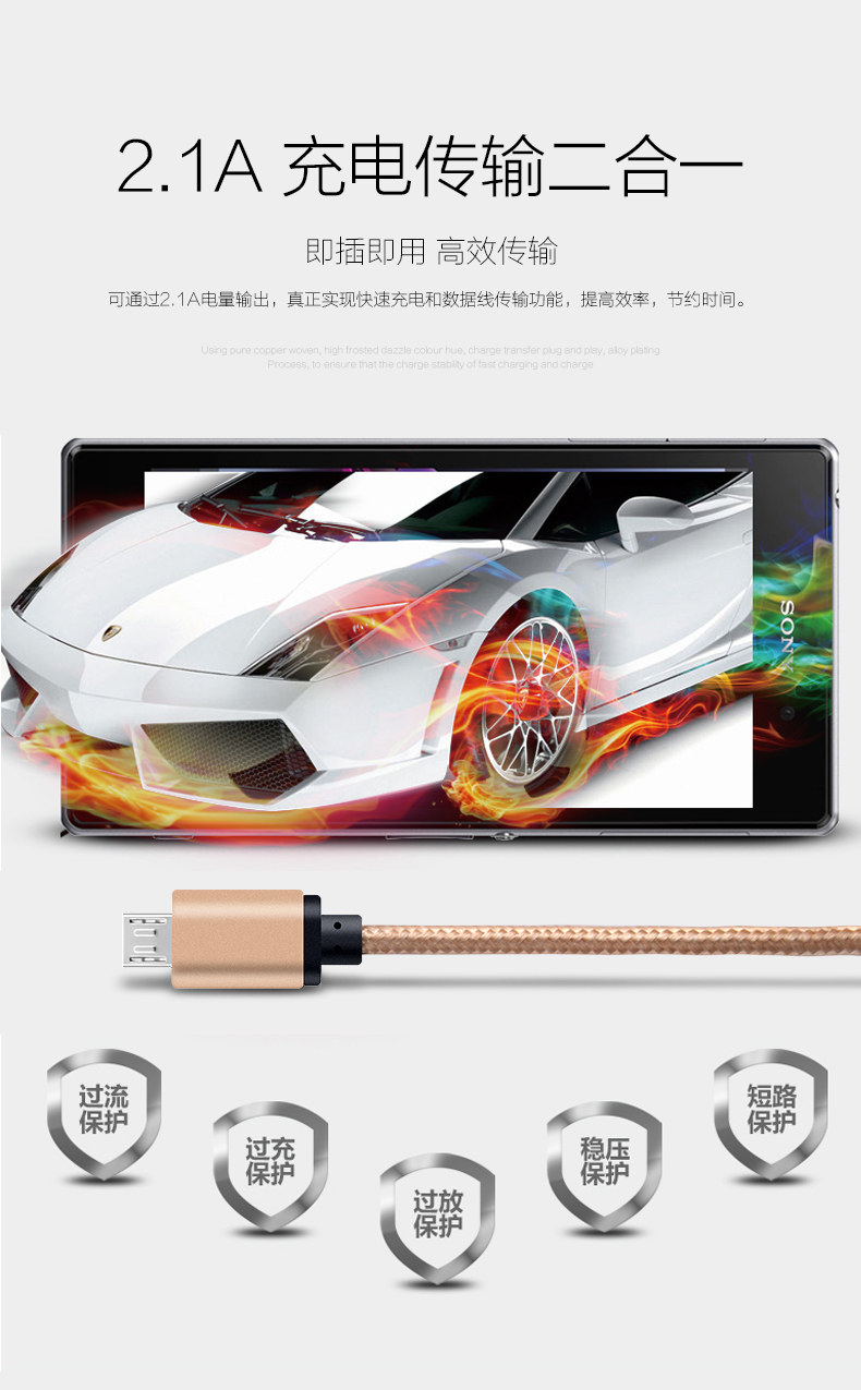Apple, металлический универсальный длинный высокоскоростной зарядный кабель, 2м