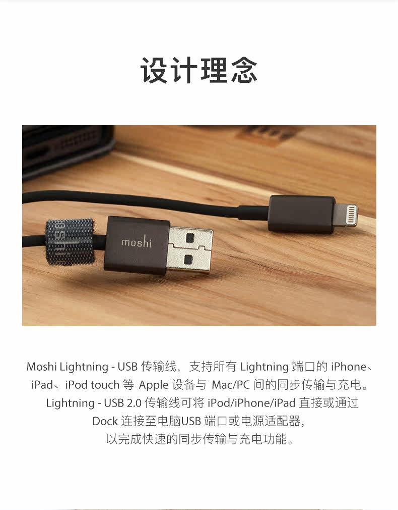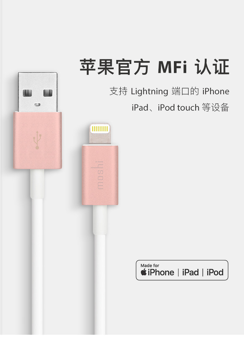 Moshi Mosh Lightning-USB Apple Data Cable 1 метр iPhone Mobile Phorning Cable Cable MFI Сертификация