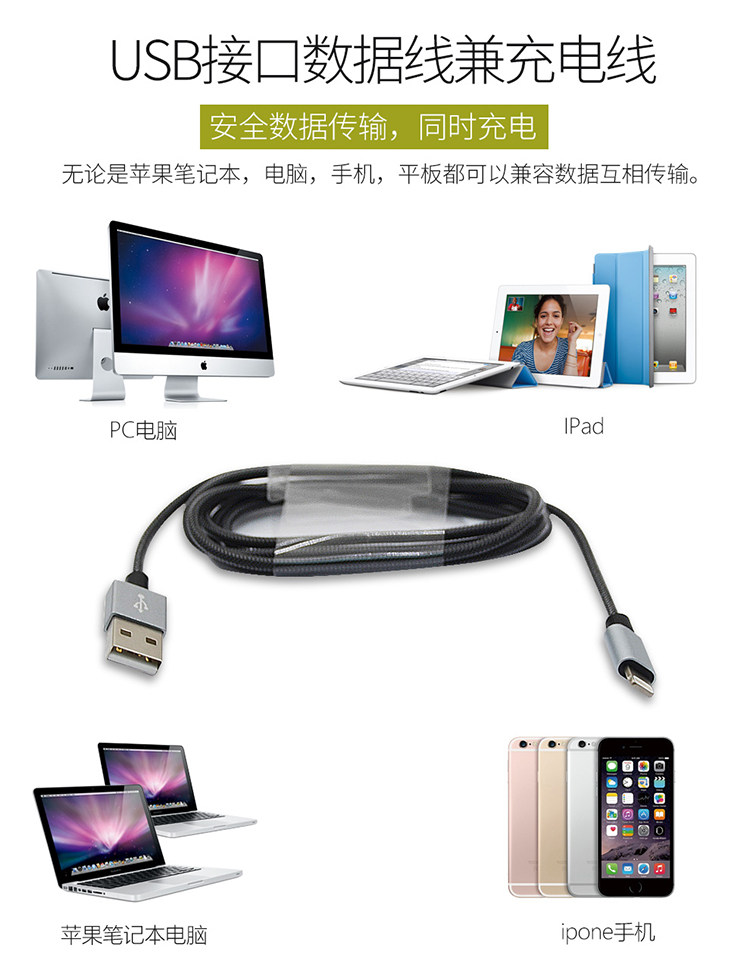 LEICKE Leipzig, сертифицированный Apple MFI, одножильный кабель для передачи данных, зарядка iPad, несъемный, из сплава, защита от поломок