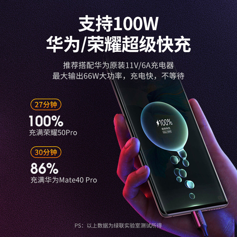 绿联 Huawei, honor, планшетный мобильный телефон, зарядный кабель, совместимое зарядное устройство, 100W, 66, 66W, андроид, 5A, 6A