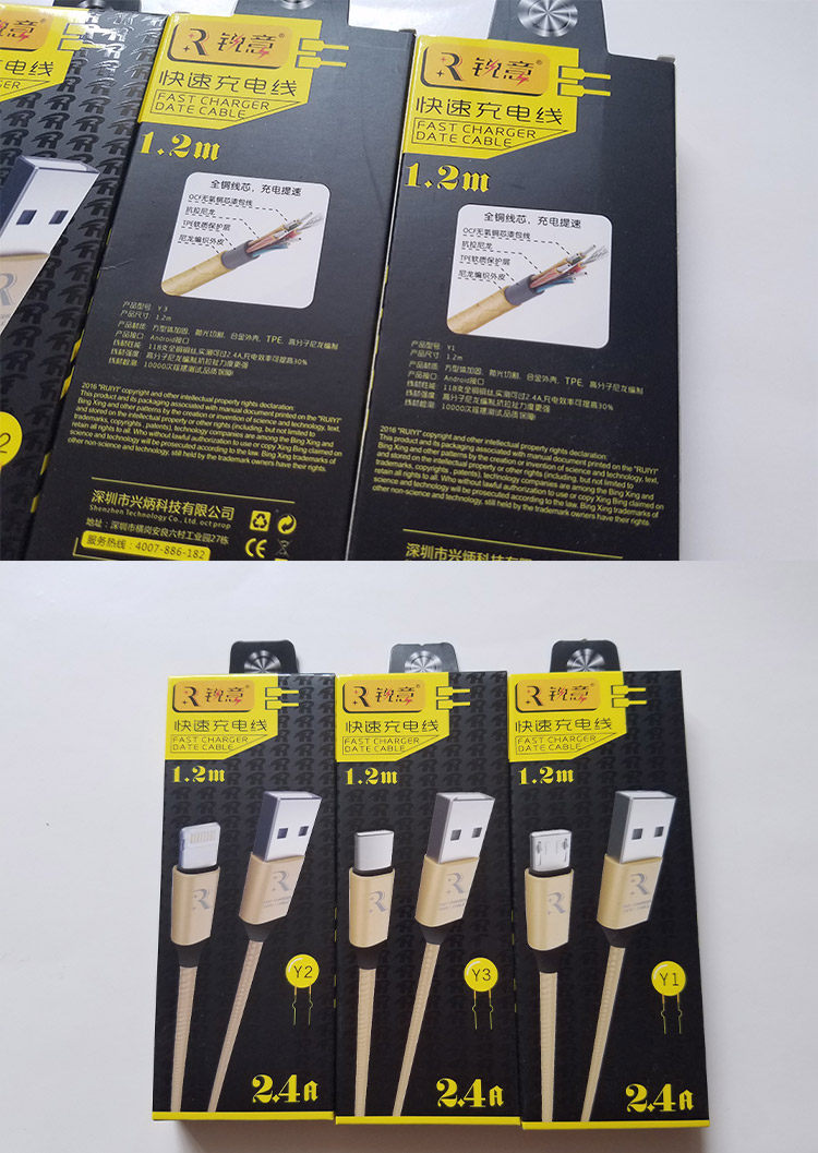 | Цвет: | Rui Yi Y1 Android V8 Зарядный кабель (2 ядра), Typec letv интерфейс кабель данных y3 (2 ядра), Apple i5/i6/i7 кабель данных Y2 (4 ядра) |