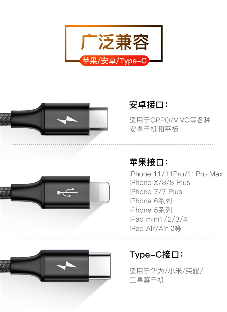 Android, совместимый зарядный кабель, универсальный мобильный телефон, iphone, «три в одном»