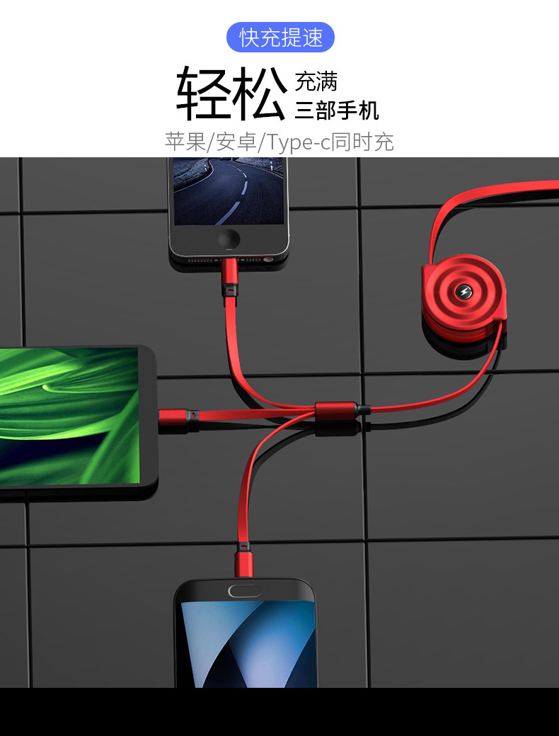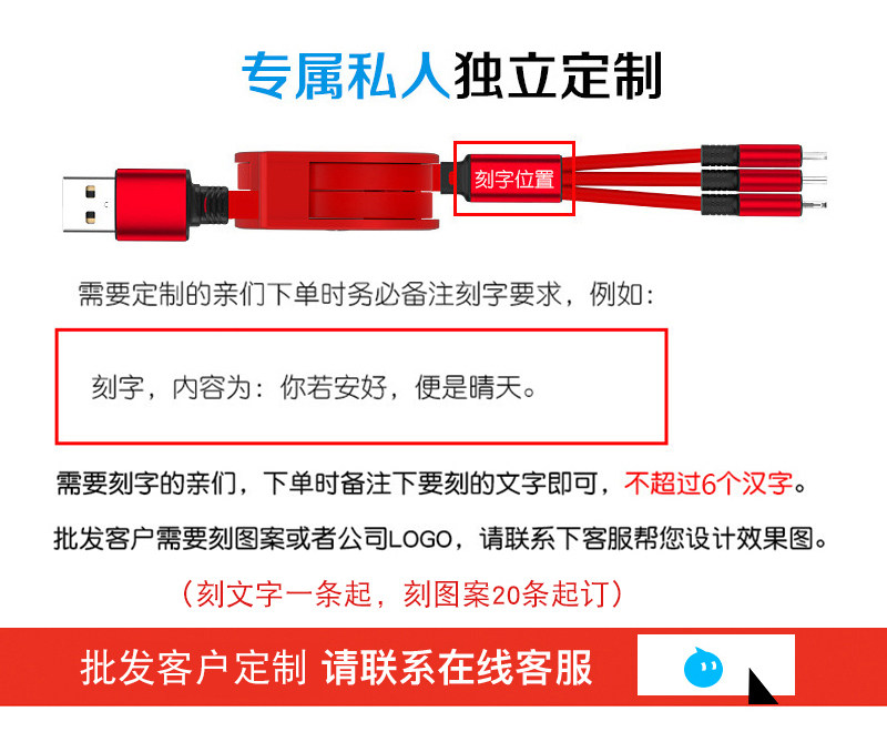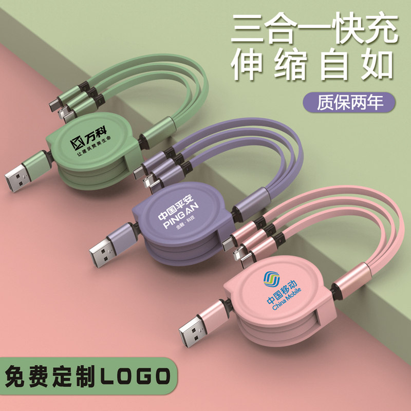 Регулируемый зарядный кабель, «три в одном», подарок на день рождения, делается под заказ, с печатью вашего логотипа