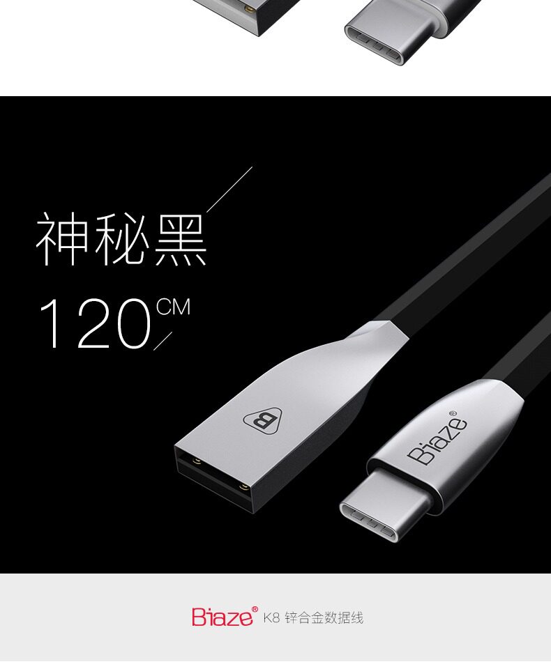 Biaze Кабель для передачи данных TYPE-C для Xiaomi 5s 4c Huawei P9 P10 Glory 8 LeTV 2 1s зарядный кабель