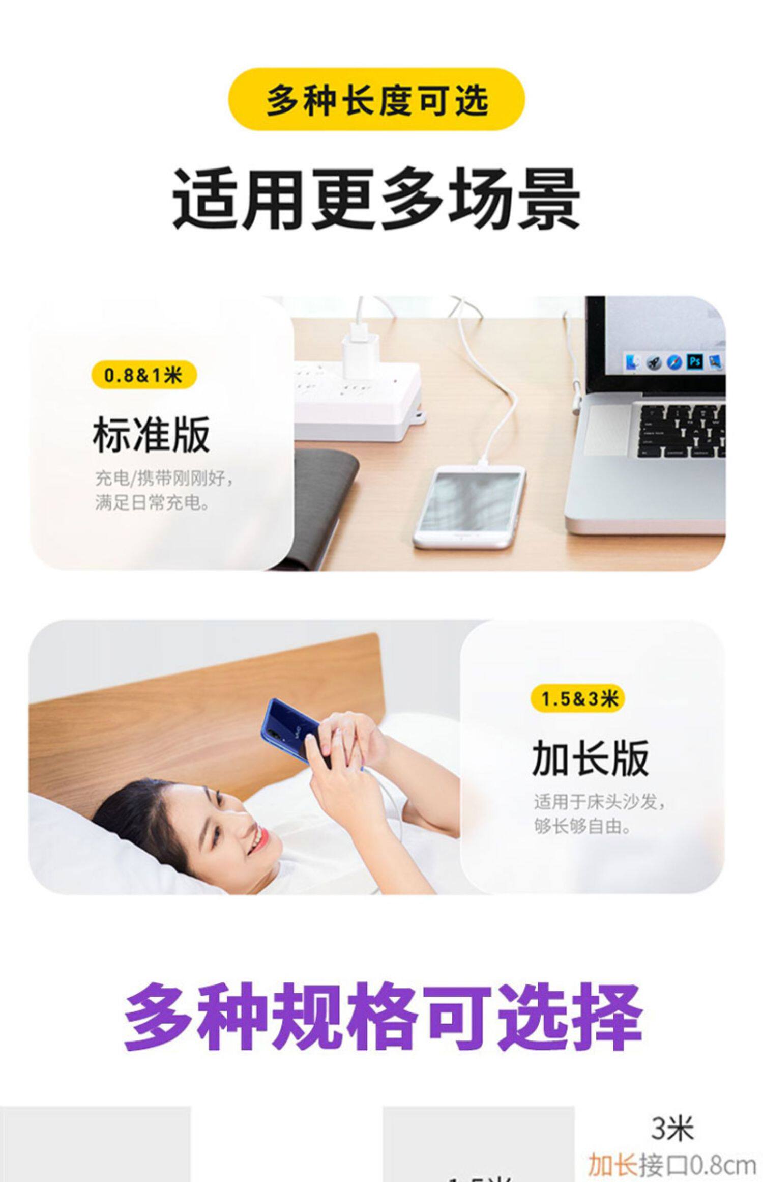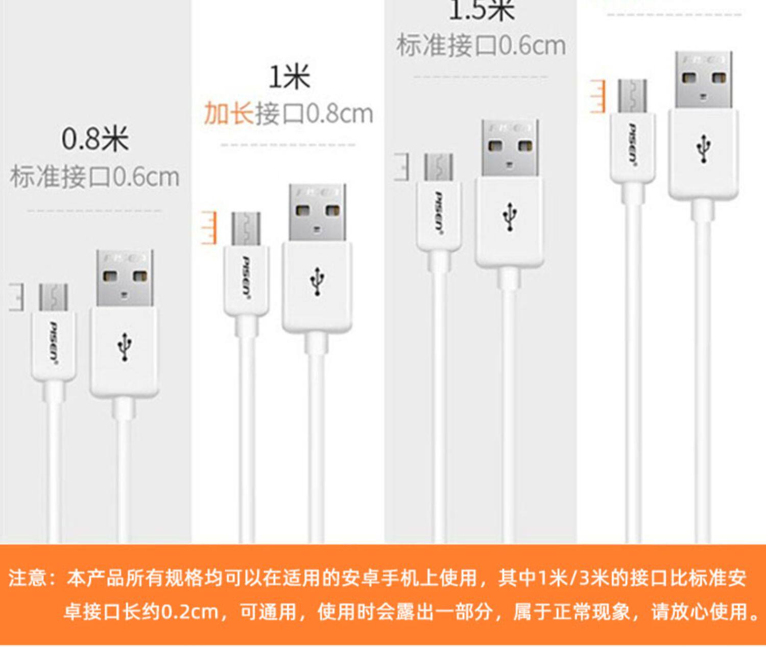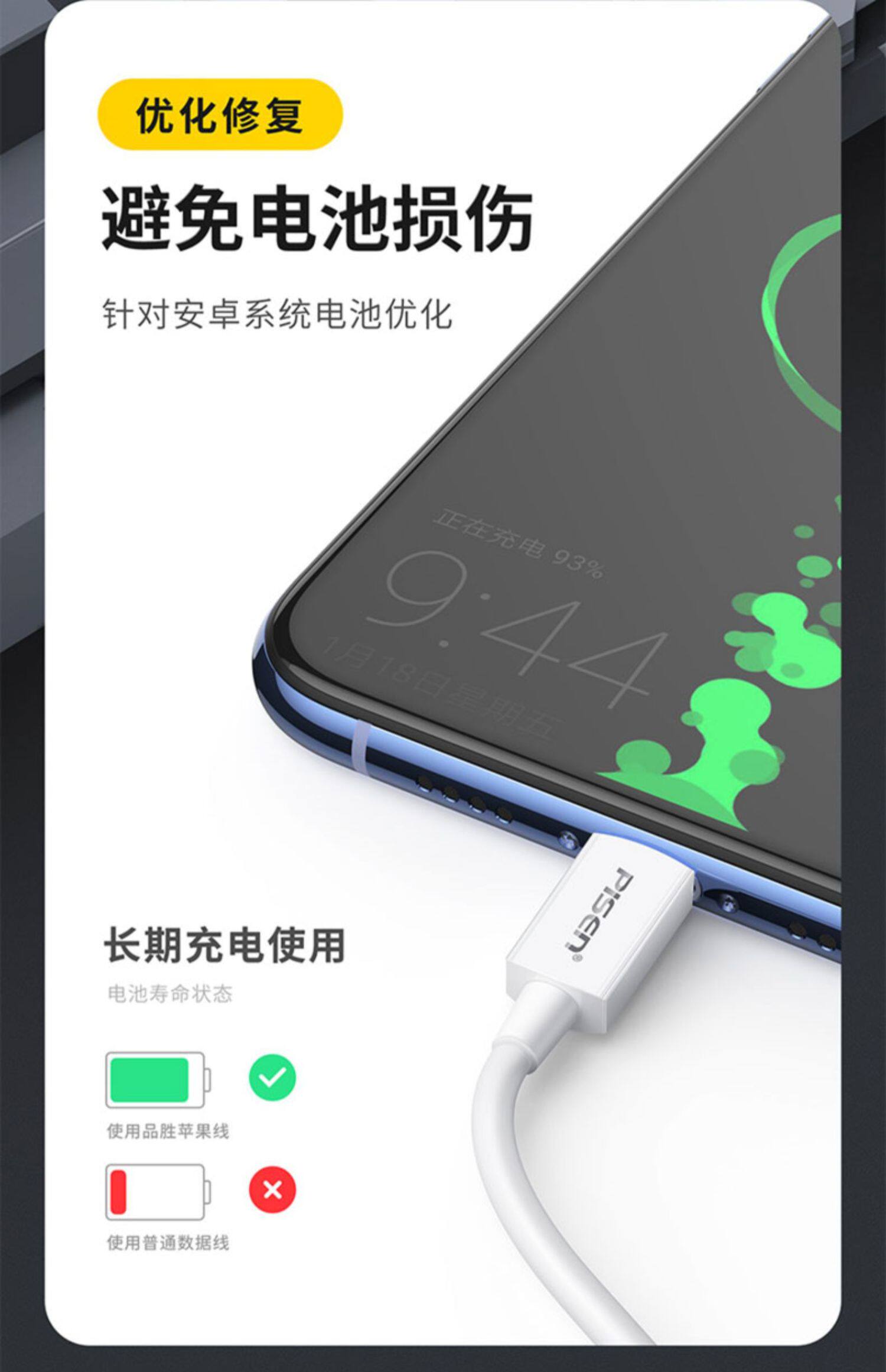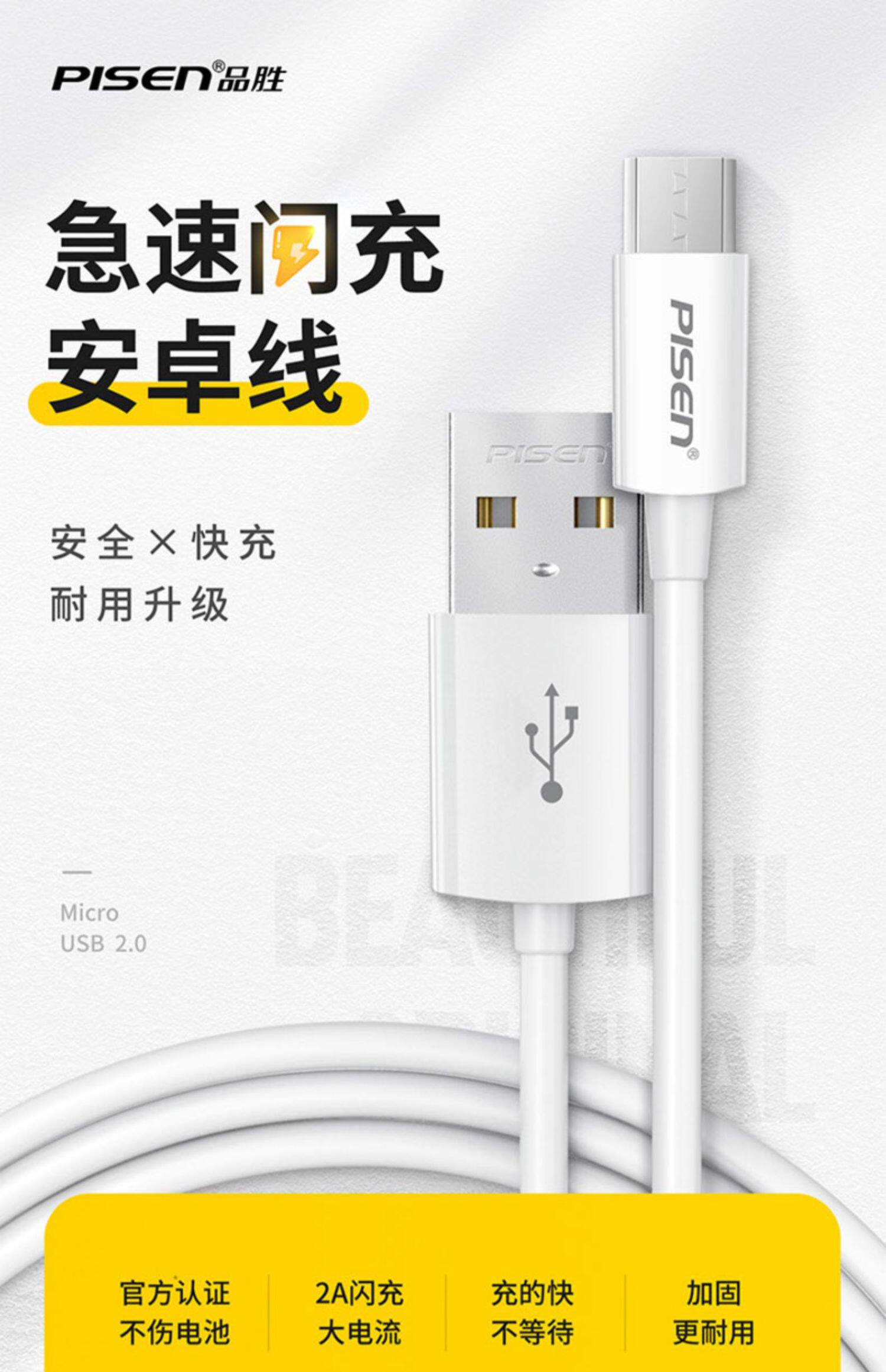 品胜 Micro, vivo, oppo, совместимый универсальный длинный мобильный телефон, высокоскоростное зарядное устройство для пожилых людей, андроид, 2A