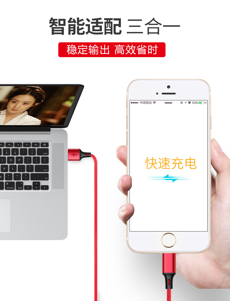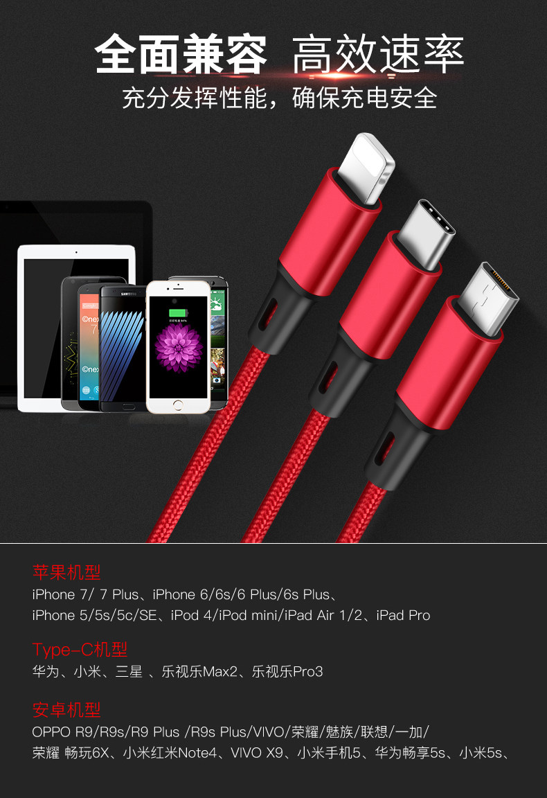Apple, зарядное устройство, мобильный телефон, универсальный длинный зарядный кабель, «три в одном», андроид