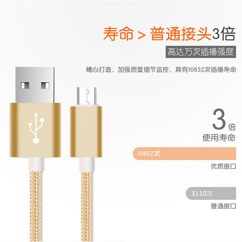 Подходит для xiaomi vivo huawei расширенный кабель данных Android Universal Nylon Woven Toven Oppo Зарядка кабеля оптом