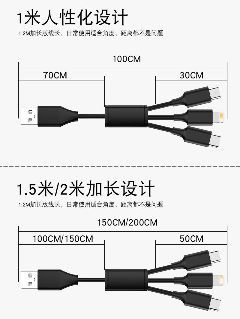Apple, huawei, универсальный длинный зарядный кабель, универсальное зарядное устройство, «три в одном», 2 в 1