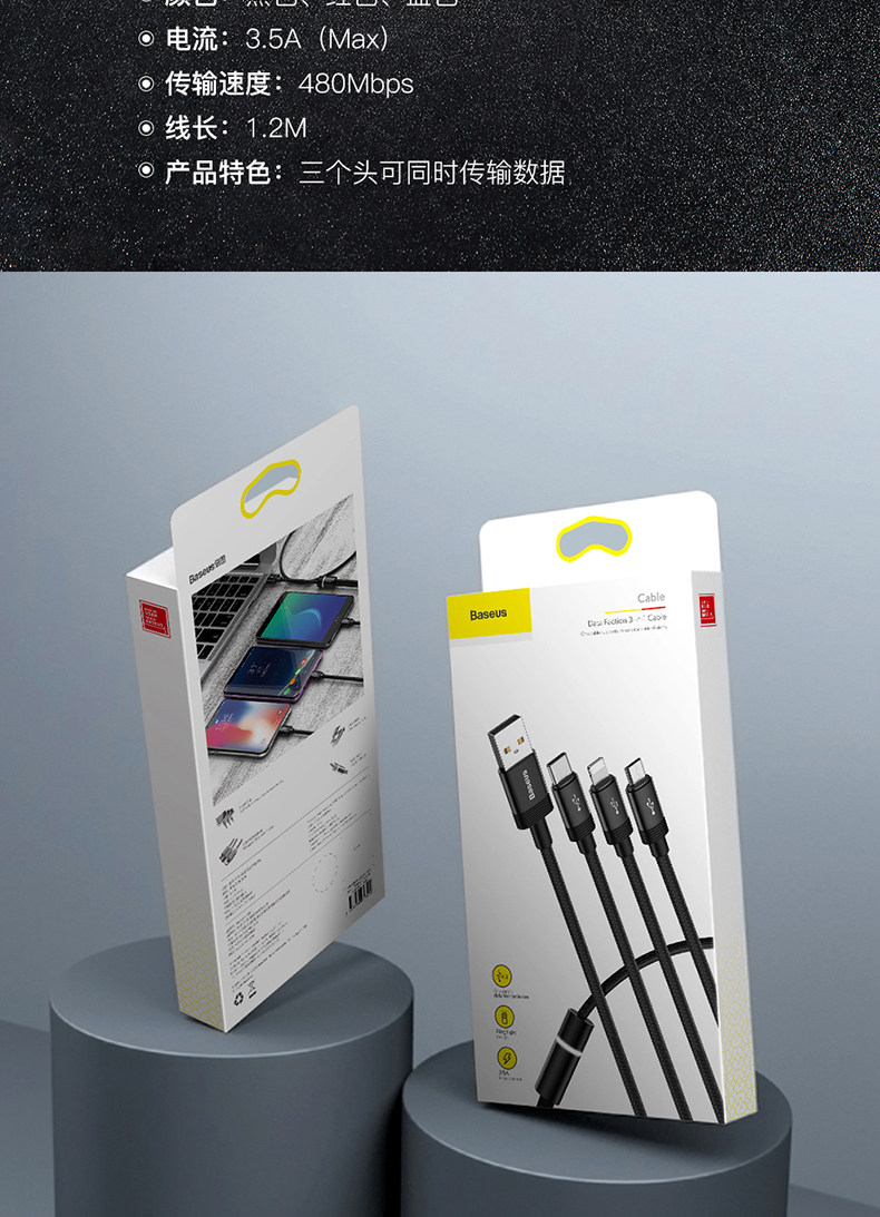 - Синий [Type-C+Apple+Android] 3.5a безопасная быстрая зарядка без травм ☆ Данные о передаче