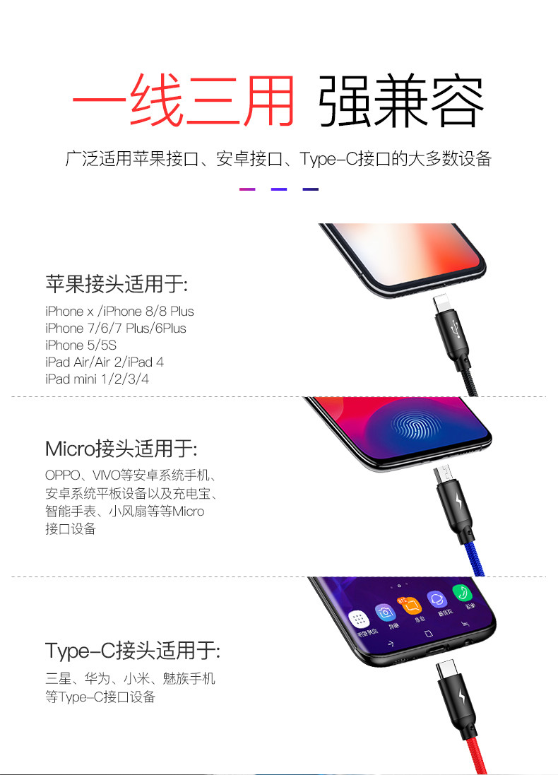 | Цвет: | 0,3 метра [Apple+Android+Type-C], 1,2 метра [Apple+Android+Type-C] |