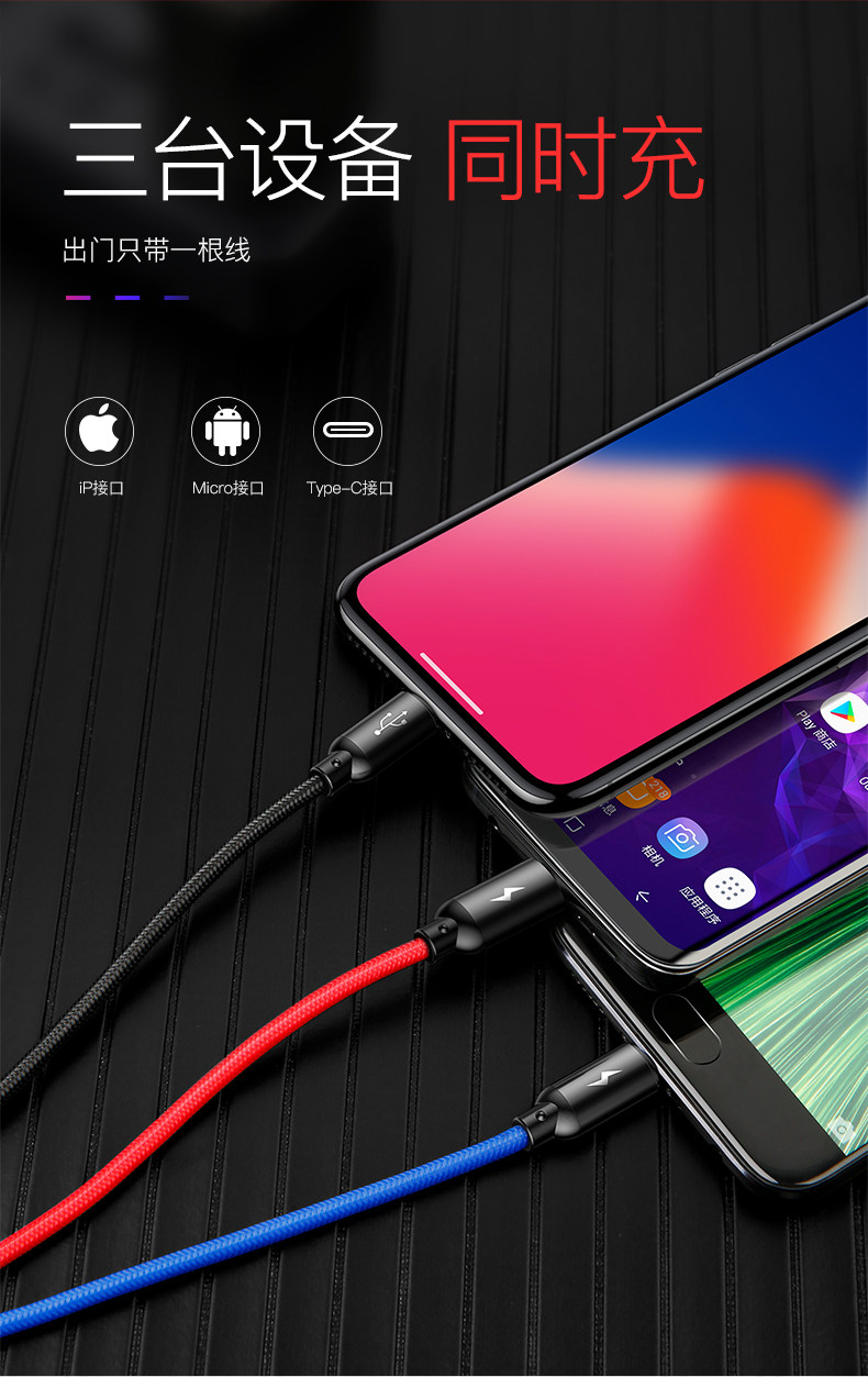 Apple, huawei, совместимый зарядный кабель, мобильный телефон, «три в одном», андроид