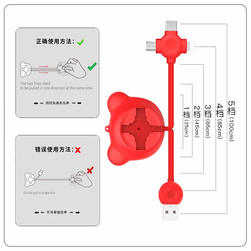 Apple, huawei, совместимый мобильный телефон, регулируемый портативный зарядный кабель, «три в одном»