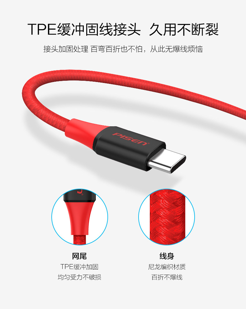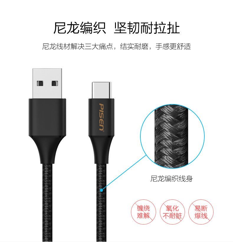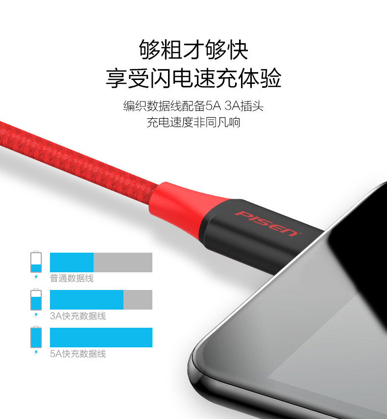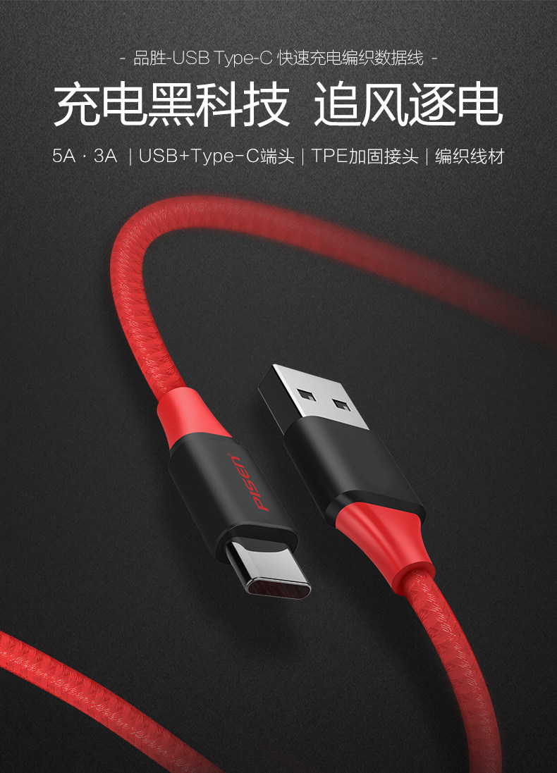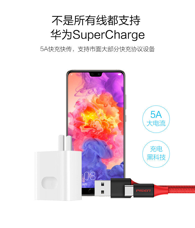 品胜 Текст Type-C Кабель данных 5A/3A подходит для быстрой зарядки Huawei Mate20.