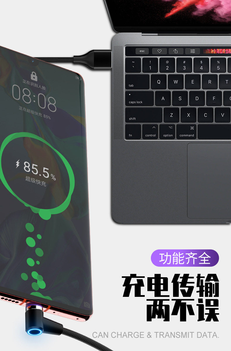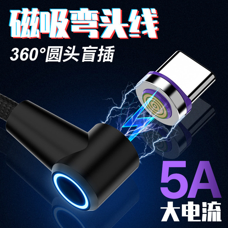 5A супер быстро зарядка тип C Сильный магнитный сосающий кабель, подходящий для Huawei Android Apple Magnet Magnetic Magnetic