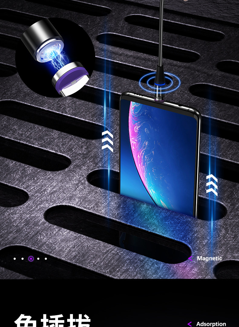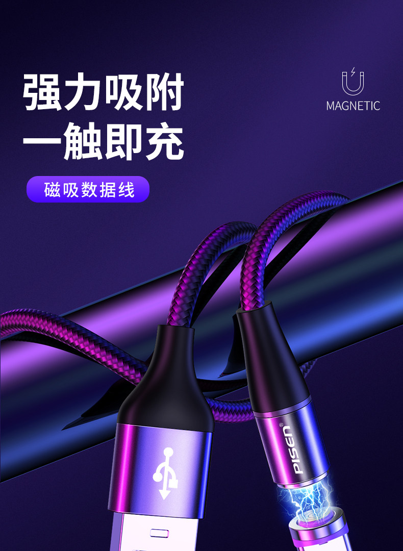 品胜 Huawei, oppo, xiaomi, vivo, мобильный телефон, магнитный зарядный кабель, совместимый универсальный сильный магнит, 5A, андроид