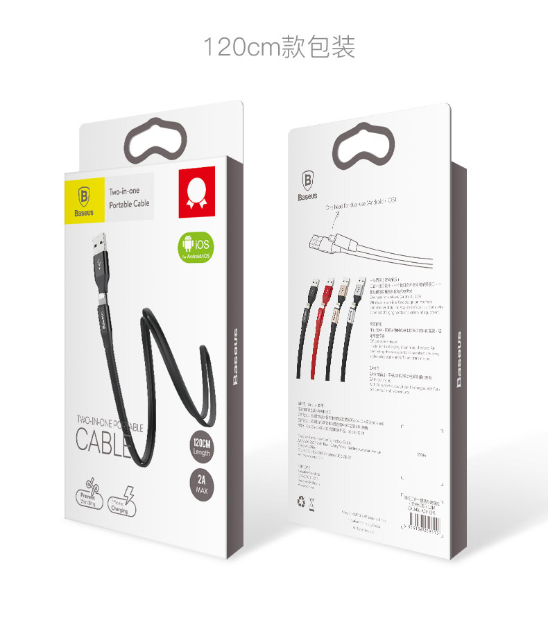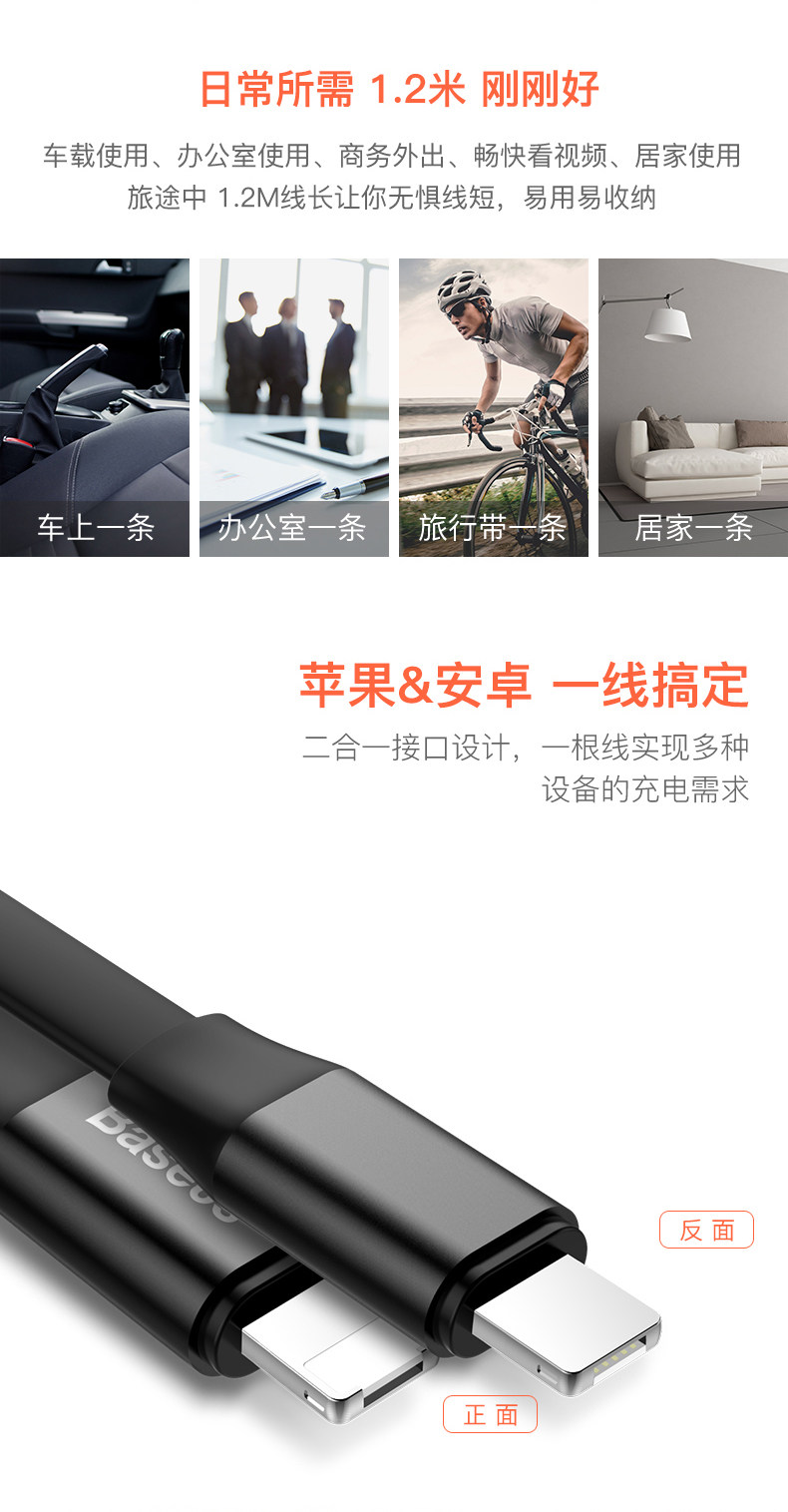 Кабель для передачи данных Baseus Apple, тип-c, Android, зарядный кабель «два в одном», портативный портативный iPhone 7plus, 8p, короткий универсальный универсальный двойного назначения, короткий кабель блока питания 11promax, универсальный универсальный кабель Huawei mate20pro