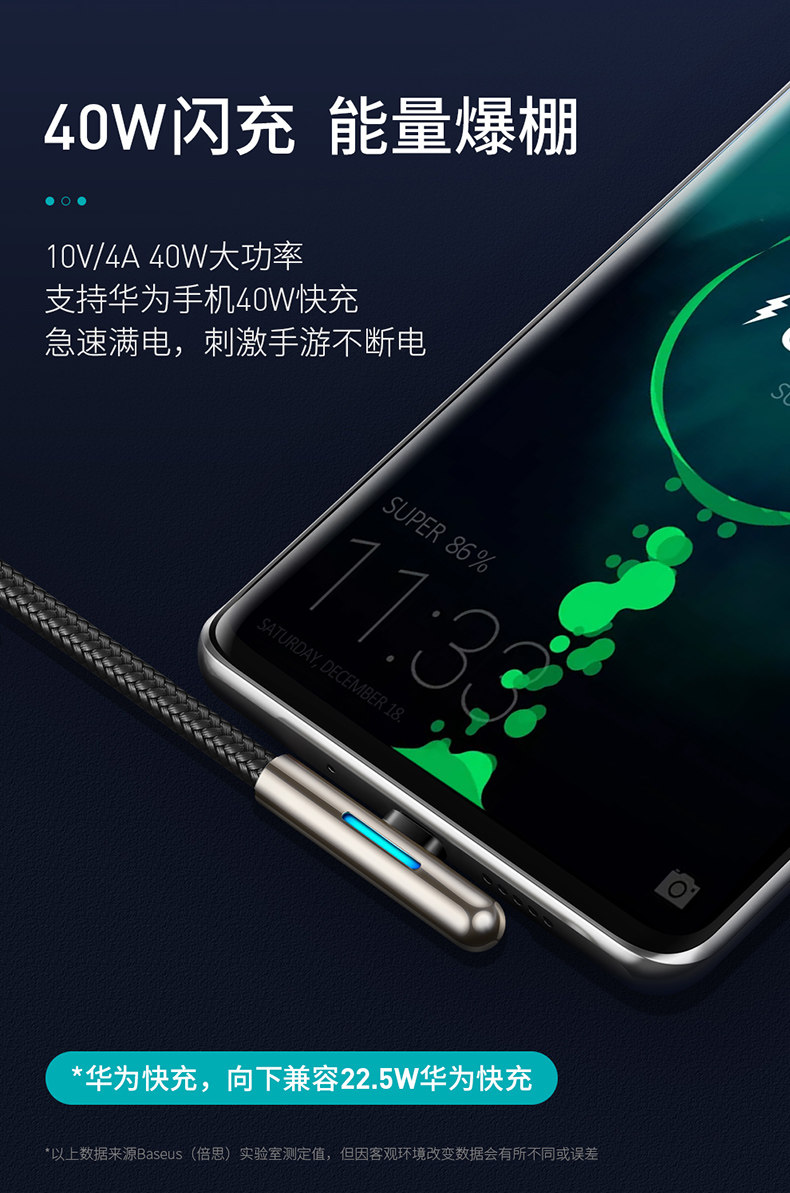 Совместимый длинный зарядный кабель, универсальный мобильный телефон, 5A, 40W, андроид, 40, P20, P30