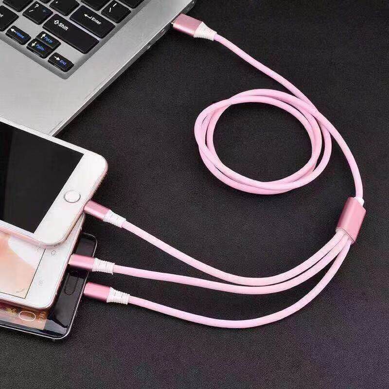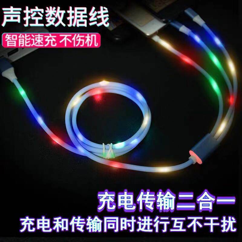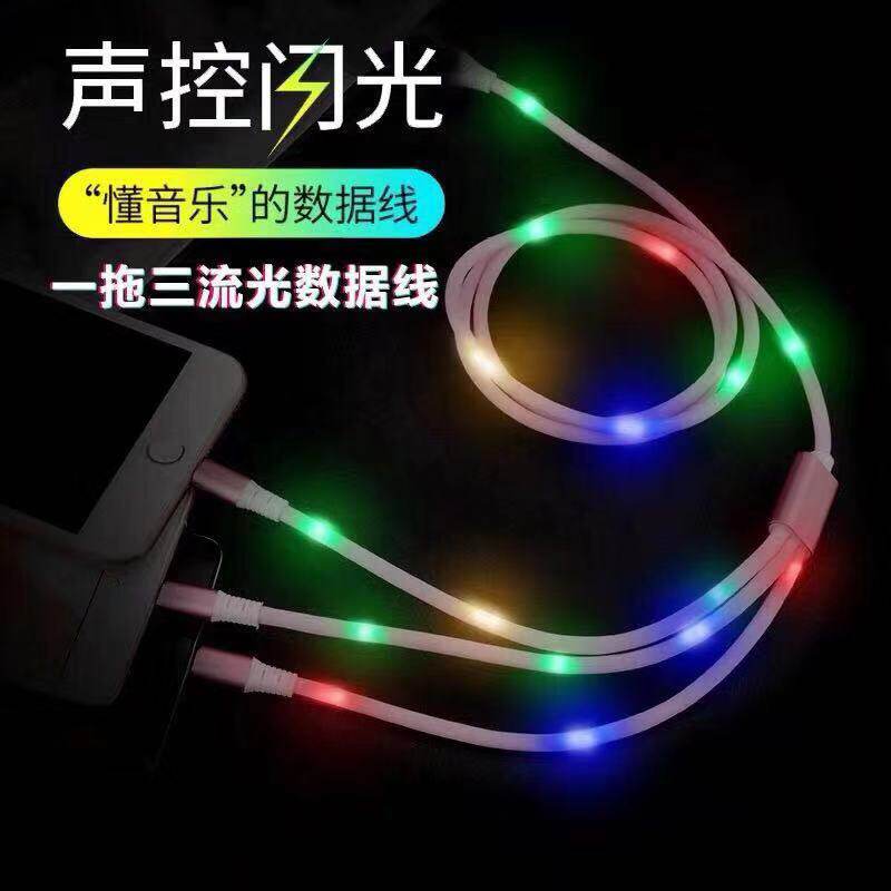 Мигающий разноцветный зарядный кабель с подсветкой, «три в одном»