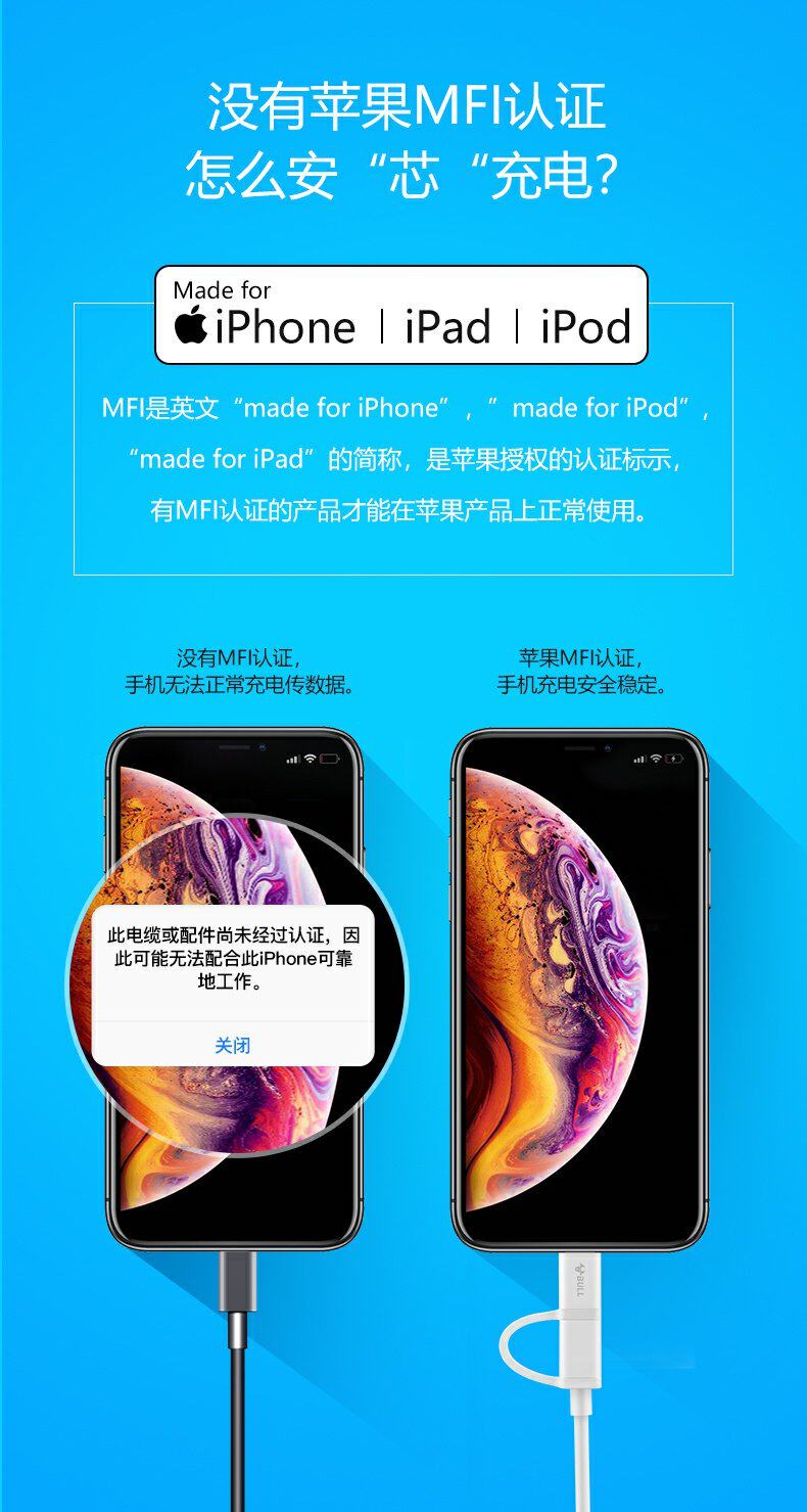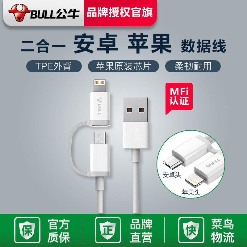 Кабель для передачи данных Bull «один к двум», двойного назначения для Android и Apple, головка для быстрой зарядки, короткая и портативная, подходит для iPhone12plusmax, сертифицированный Apple универсальный кабель для передачи данных Android «два в одном» для iPhone5