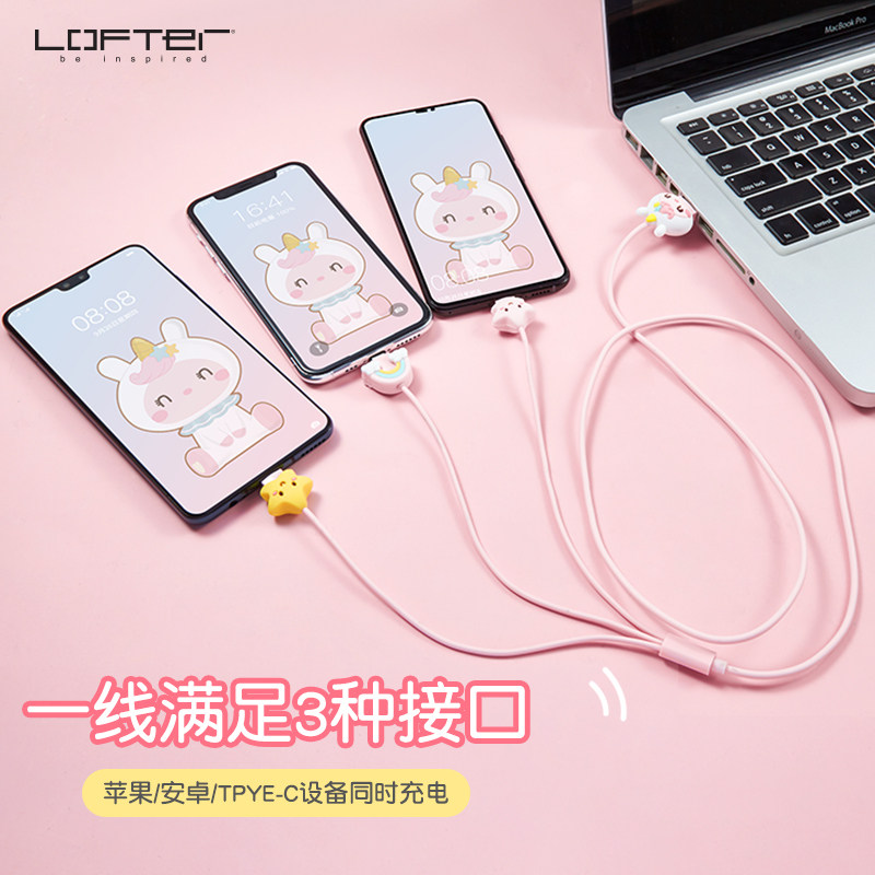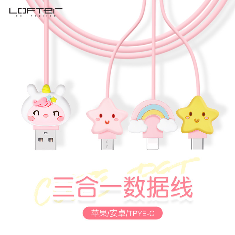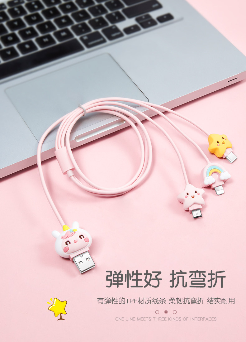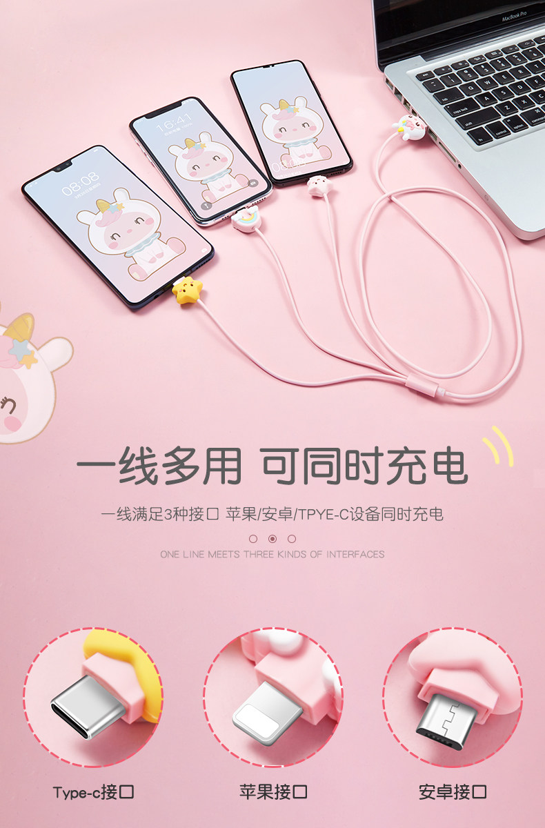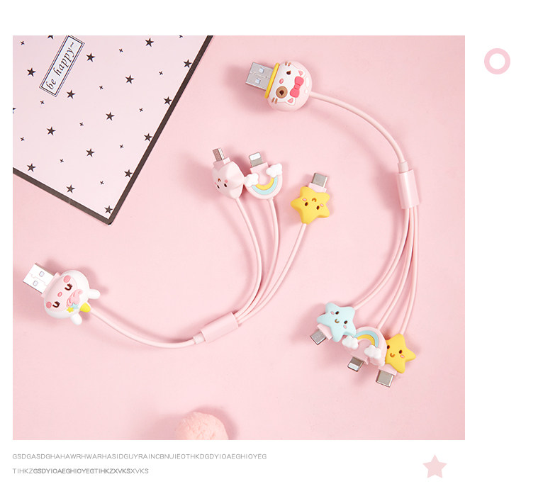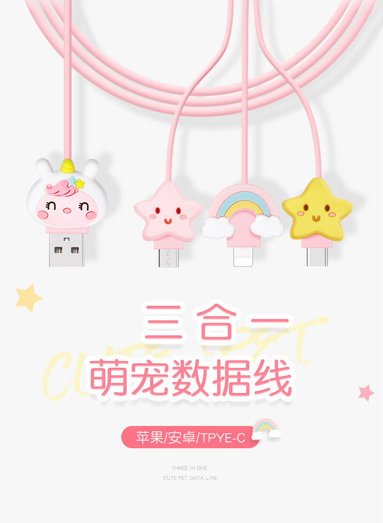 Apple, iPhone12 Pro, iPhone 12, мультяшный милый зарядный кабель, универсальный мобильный телефон, iphone, «три в одном», 2м, 2A