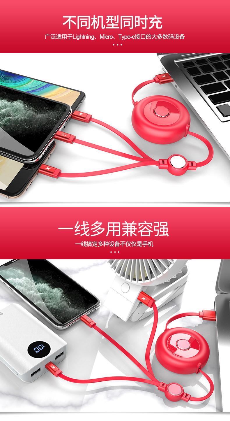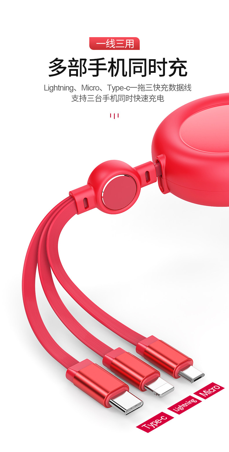 Apple, huawei, зарядный кабель *S, совместимый iPhone 8, длинный универсальный телескопический мобильный телефон, «три в одном», iphone, 2 в 1, андроид
