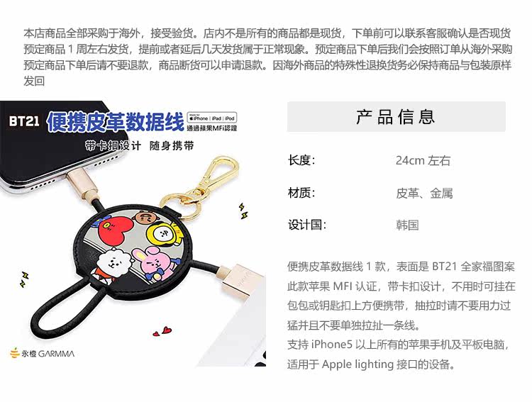 BT21 BTS подходит для кожаного кабеля для передачи данных Apple iPhone11, портативный выдвижной зарядный кабель XS Pro