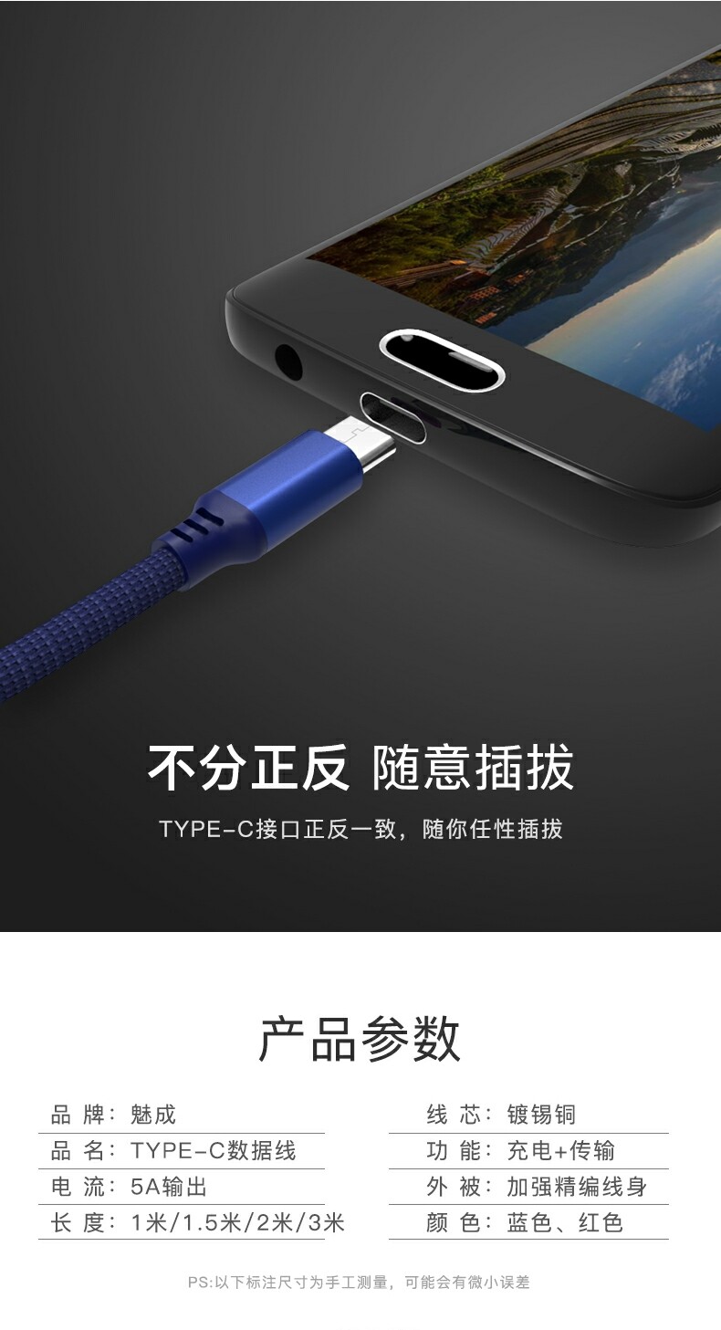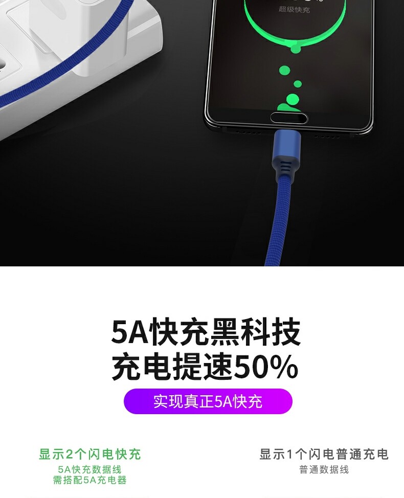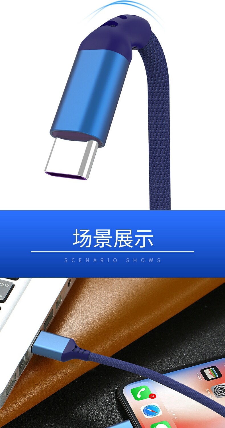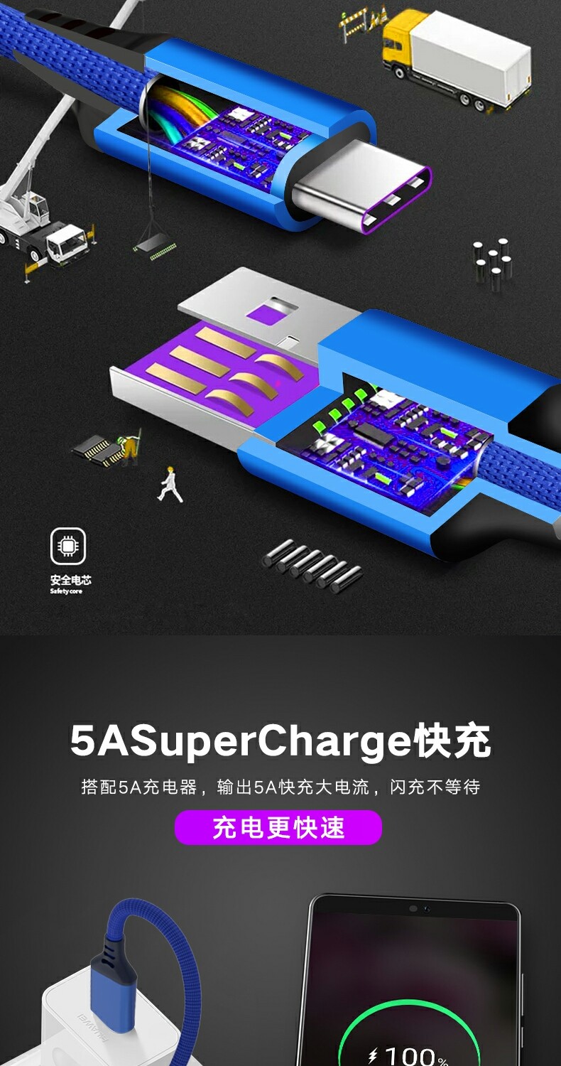 Meisheng Super Fast Charging 3 -метровый кабель данных, подходящий для Huawei Oppovivo Xiaomi Honor Redmi OnePlus Typec Mobile Phone Зарядка кабеля Fast Charger