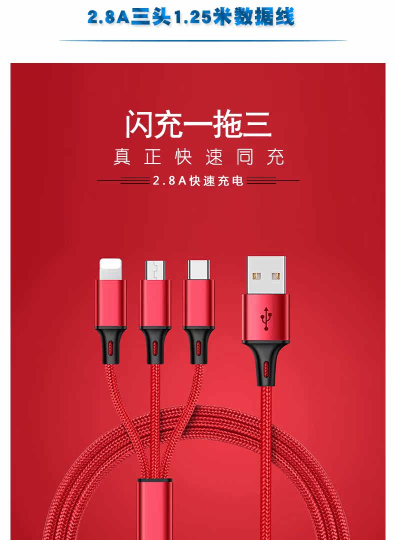 Apple, huawei, vivo, xiaomi, быстрый мобильный телефон, совместимый зарядный кабель, «три в одном», iphone, андроид