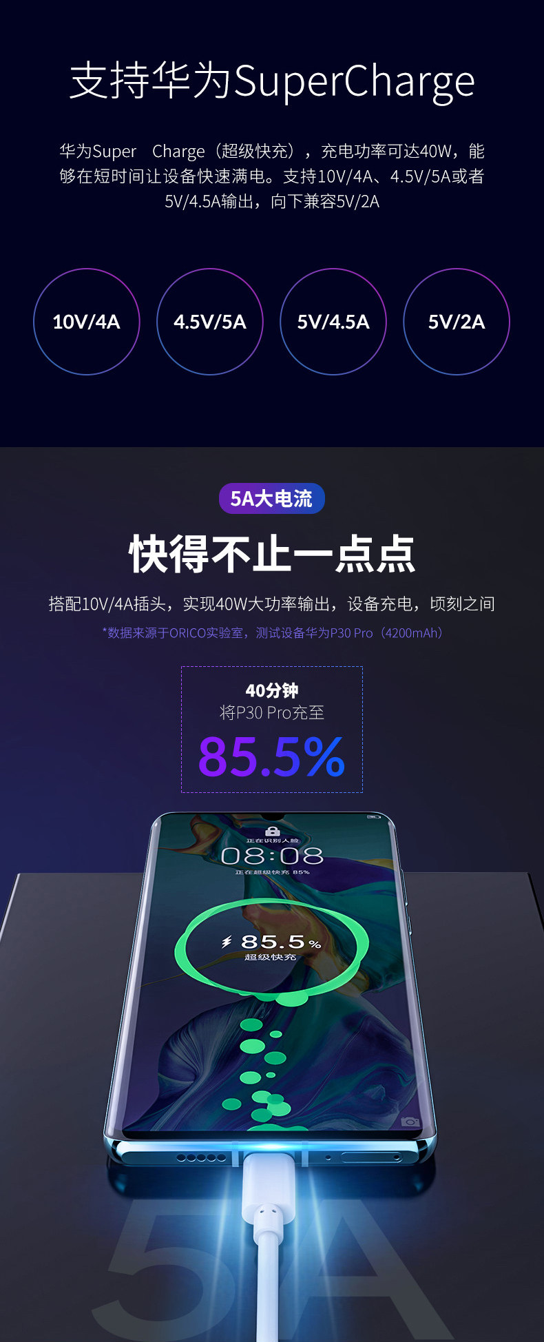 Orico/奥睿科 Huawei, honor, xiaomi, мобильный телефон, совместимый зарядный кабель, 5A, андроид, быстрая зарядка 40W