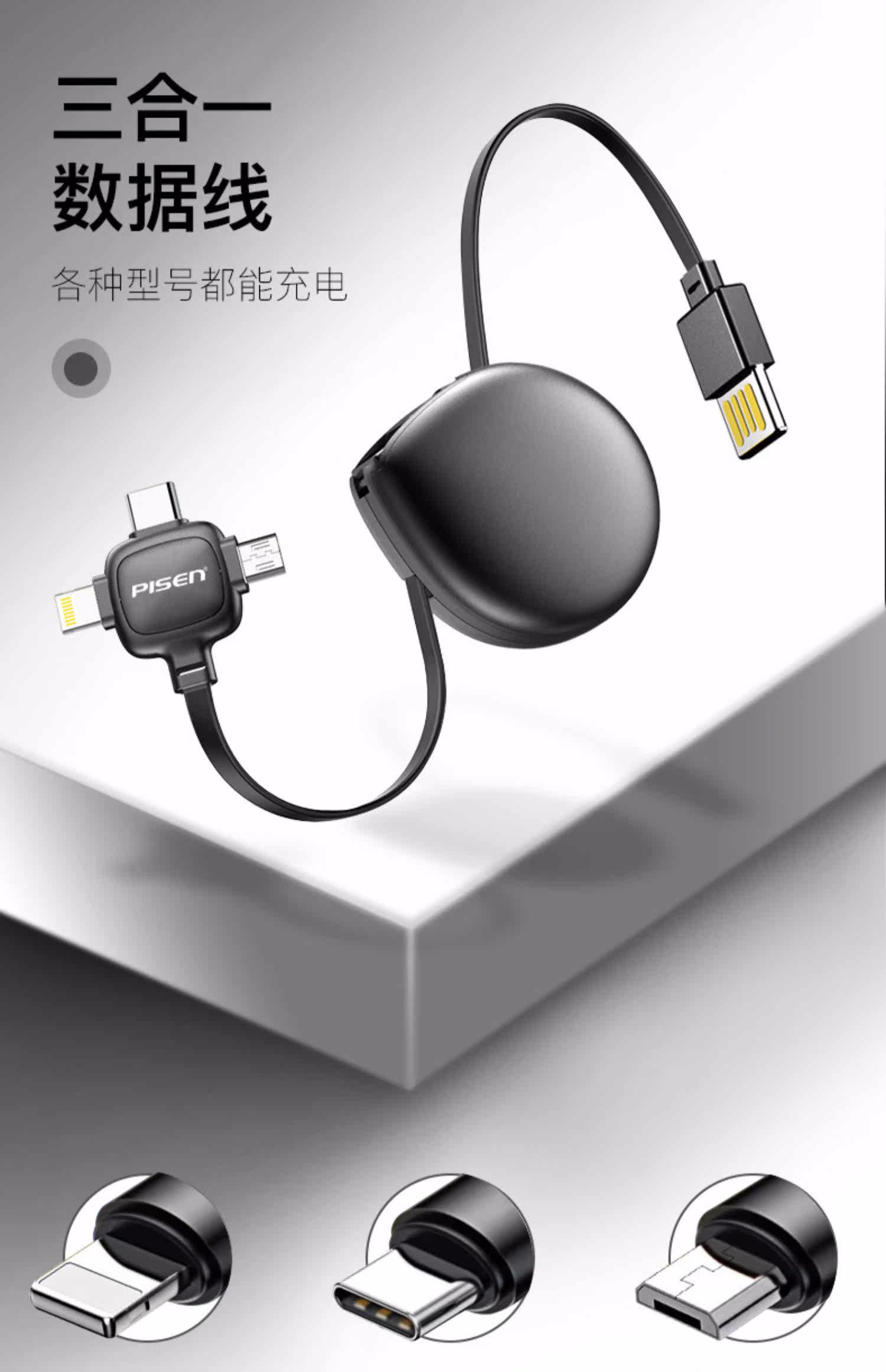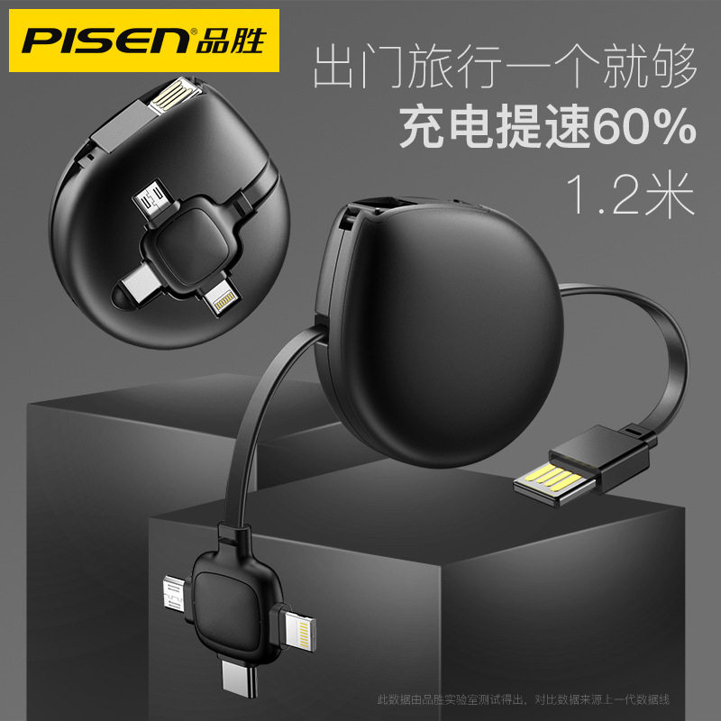 品胜 Apple, huawei, телескопический длинный зарядный кабель, универсальное зарядное устройство для автомобиля, «три в одном»