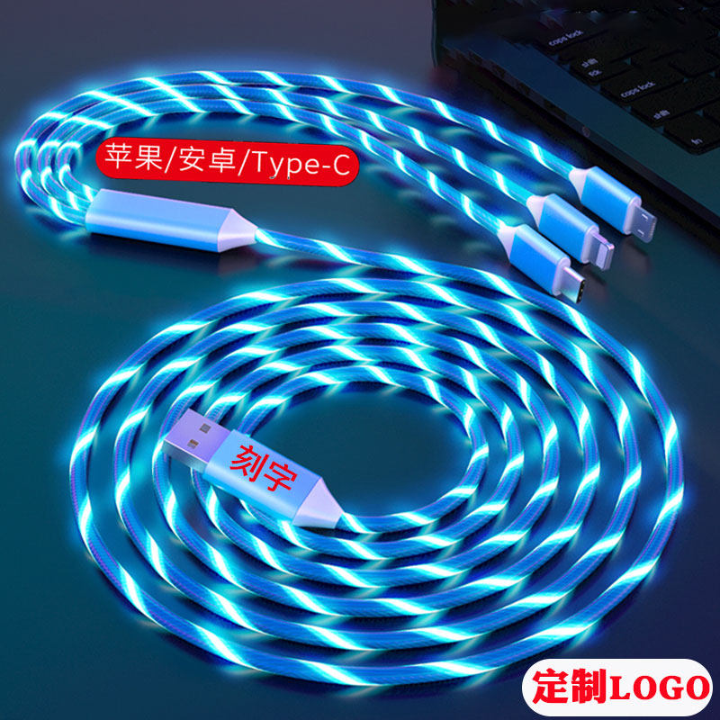 Один -тригрирующий три потоковых кабеля данных Три -в одном автомобиле -загрузке лошади, кабель с быстрой зарядкой, небольшой логотип подарка QR -код