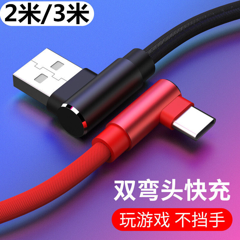Кабель данных Type-C Двойной локоть подходит для Huawei P20 Mate30 40pro nova10 Xiaomi 8/9 Честь Samsung Зарядное устройство увеличивает 2-метров