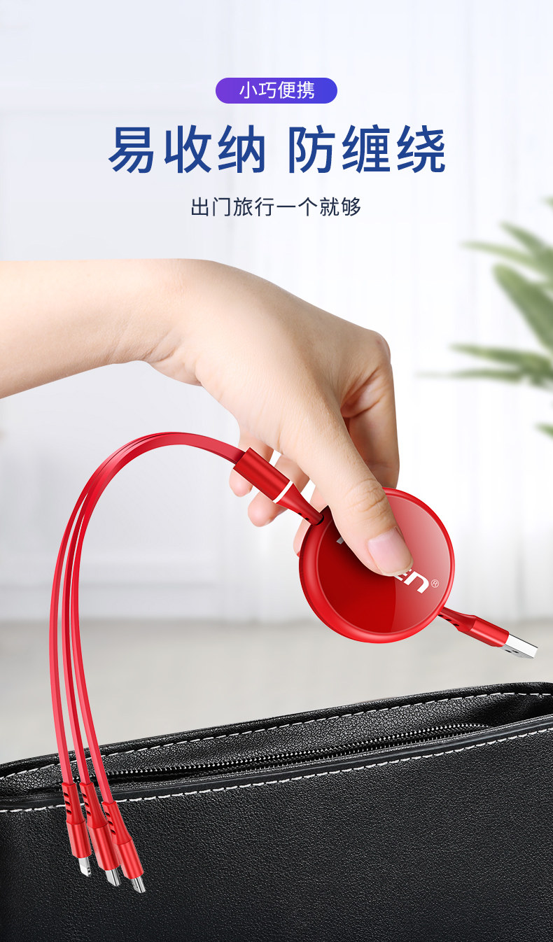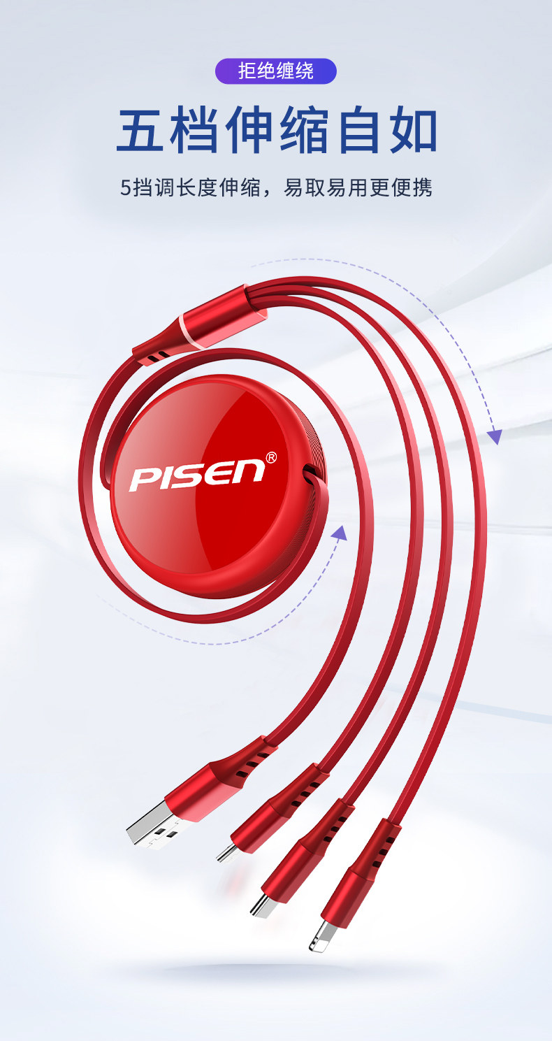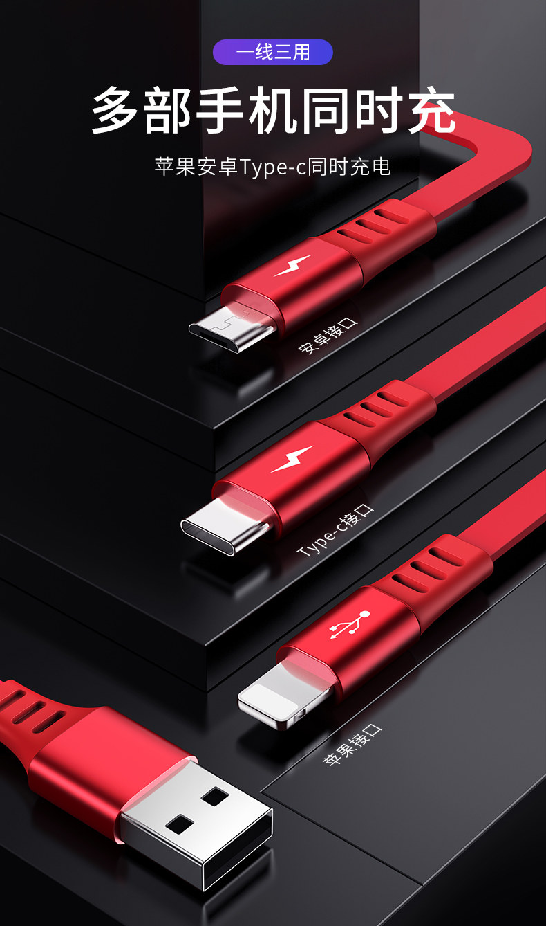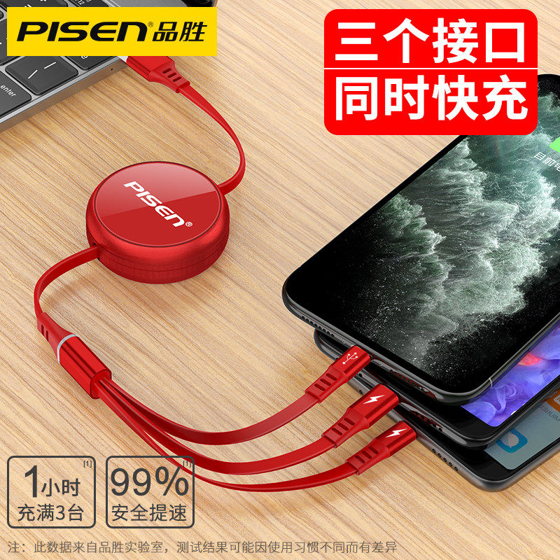 品胜 Apple, xiaomi, huawei, регулируемый совместимый зарядный кабель, универсальный мобильный телефон, «три в одном», Android 3
