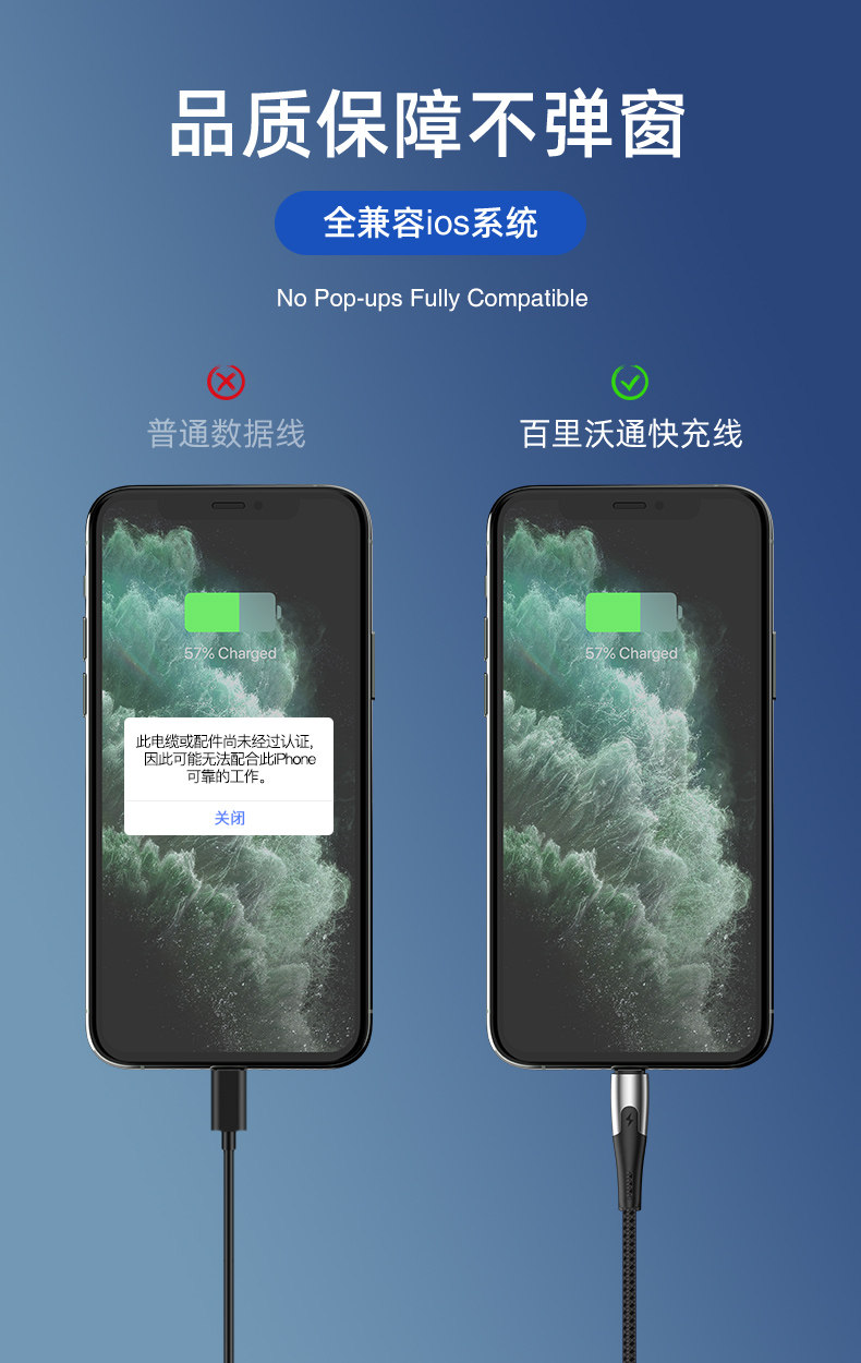 Кабель для передачи данных Baili Wotong Apple 12 iPhone11, быстрая зарядка, вспышка, зарядка, зарядный кабель 6s, устойчивый к изгибу, подходит для планшетов X/7/8p/XR/se/XSMax, зарядка iPad, 1,8 метра, оригинал