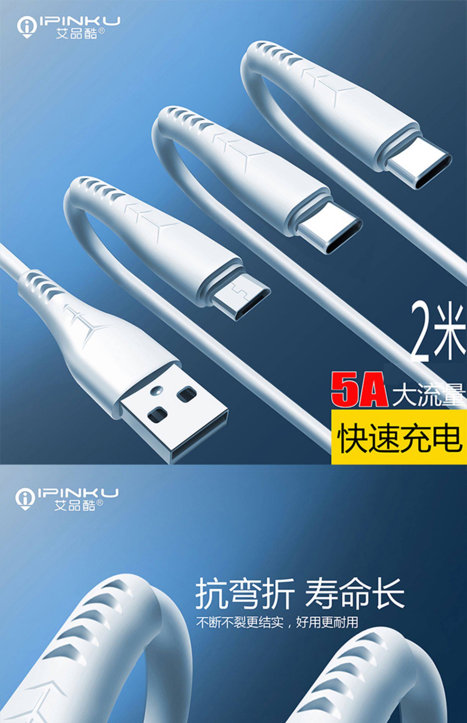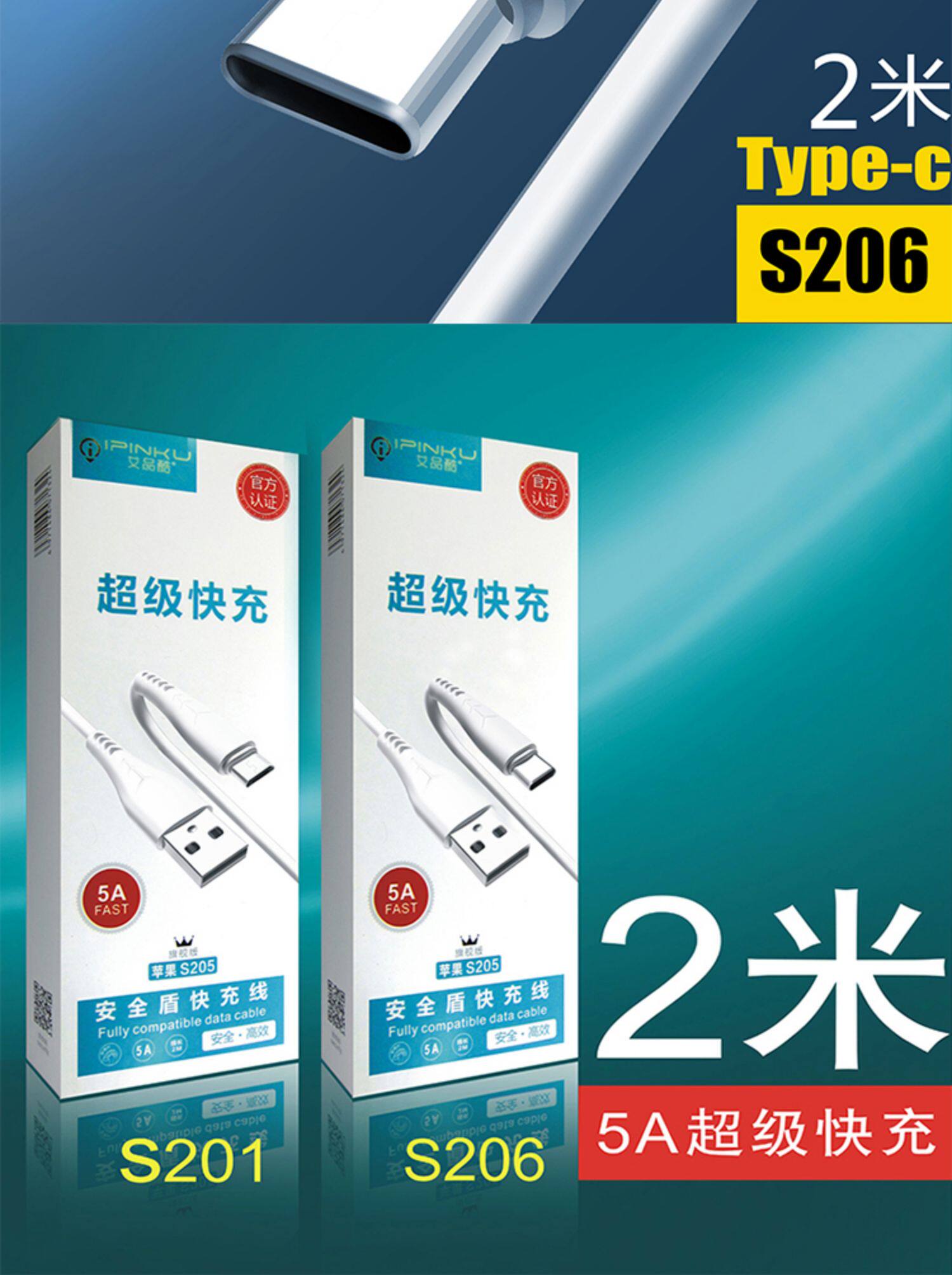 - IPK-S206 Type-C 5A Линия быстрой зарядки 2 метра белый