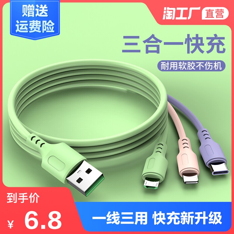 Apple, совместимое зарядное устройство, универсальный мобильный телефон, «три в одном», 3A, андроид