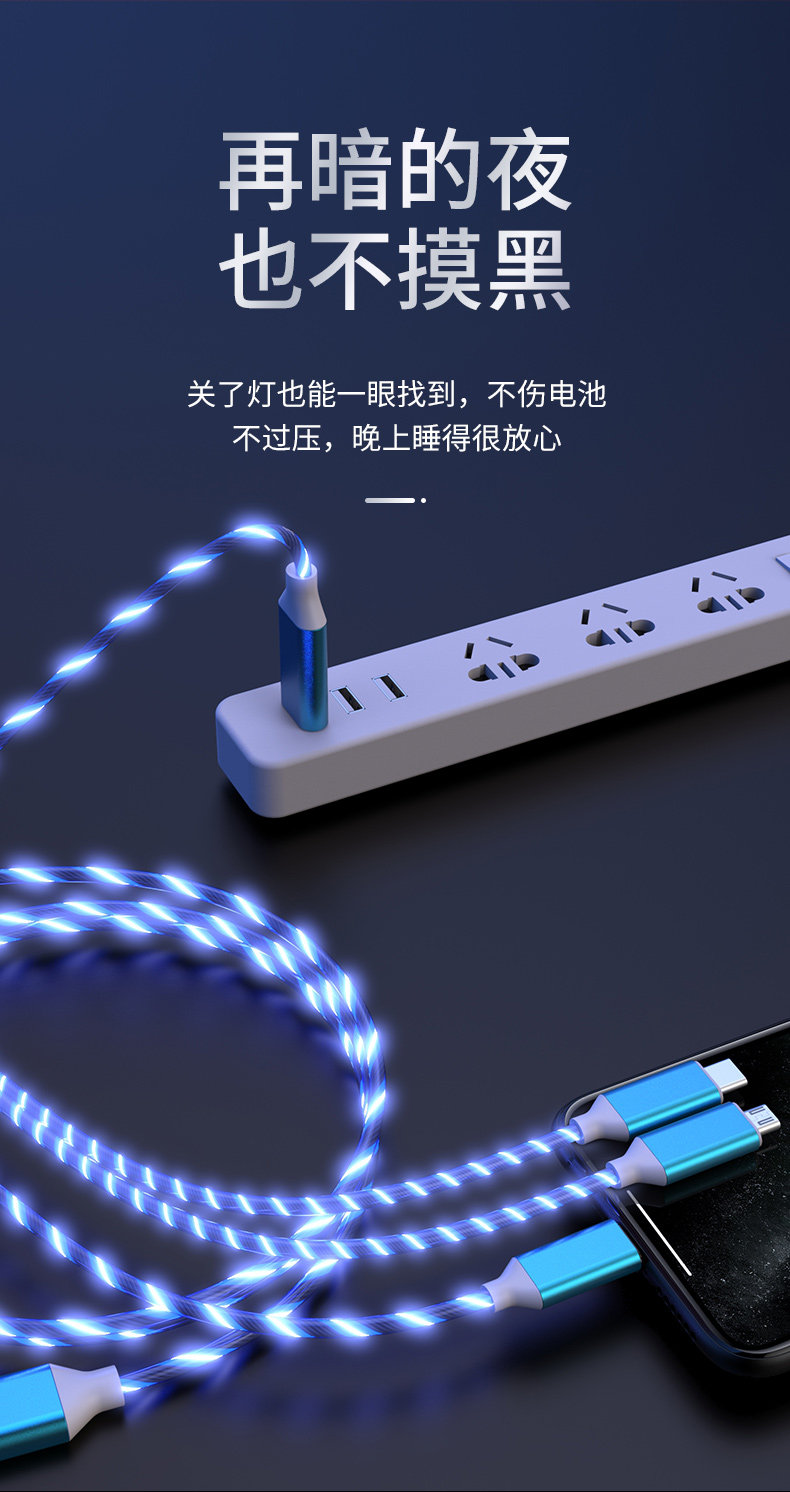 Apple, huawei, светящееся зарядное устройство, универсальный быстрый безопасный прочный износостойкий мобильный телефон, «три в одном», андроид