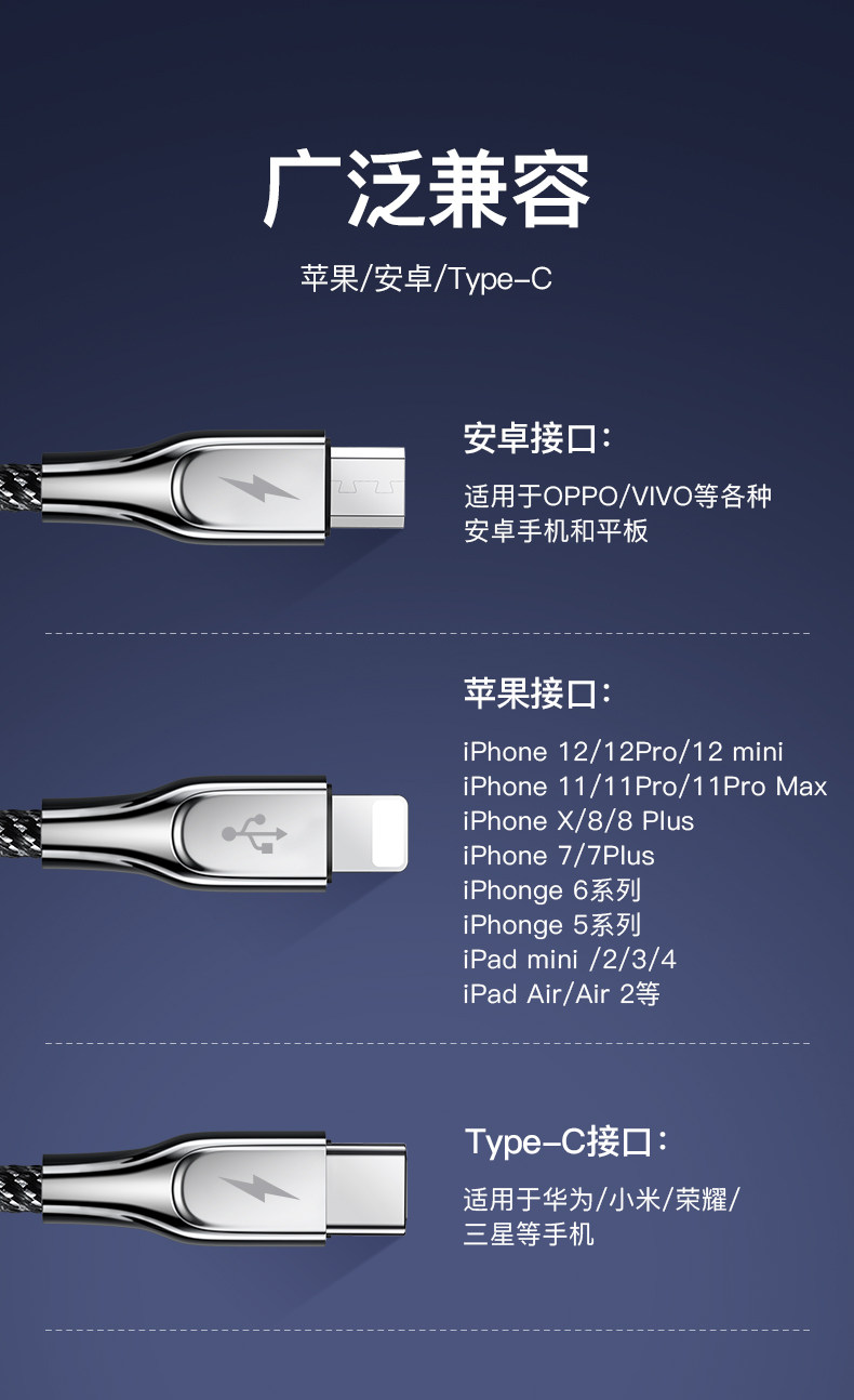 | Цвет: | 1,5 метра [Apple+Android+Type-C] Обновление быстрого зарядки без травм ★ 50 минут полного, Apple, безвредный, 1.5м, 50 мин, [Обновление плагин с сплава цинк+линия плетения] подходит для офиса/дома/автомобиля, Вы можете настроить три устройства одновременно ● Применимый мобильный телефон Apple/Android/Type-C ↑ |