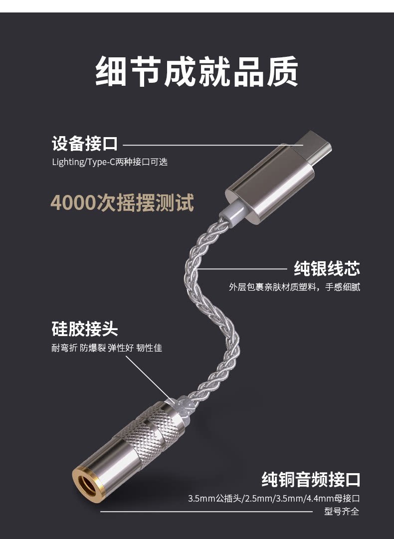 | Цвет: | Тип-от 3,5 мм (серебро стерлинга), Type-C до 3,5 мм (смешанный с линией серебристого серебряной медикристаллической меди), Тип-C до 2,5 мм (серебро стерлинга), Type-C до 2,5 мм (смешанный с линией серебристого серебряной монокристаллической меди), Тип-C до 4,4 мм (серебро стерлинга), Type-C до 4,4 мм (смешанный с линией серебристого серебряной медикристаллической меди), Общественное сиденье с типами-C до 3,5 мм (серебро стерлинга), Общественное сиденье типа с 3,5 мм (смешано с серебряной линией с монокристаллической медью) |