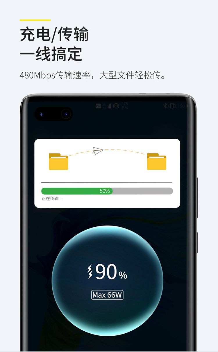 【USB-Type-C】 Bessi 6A Кабель данных о быстрой зарядке 66 Вт/40 Вт подходит для Huawei Mate40 Pro