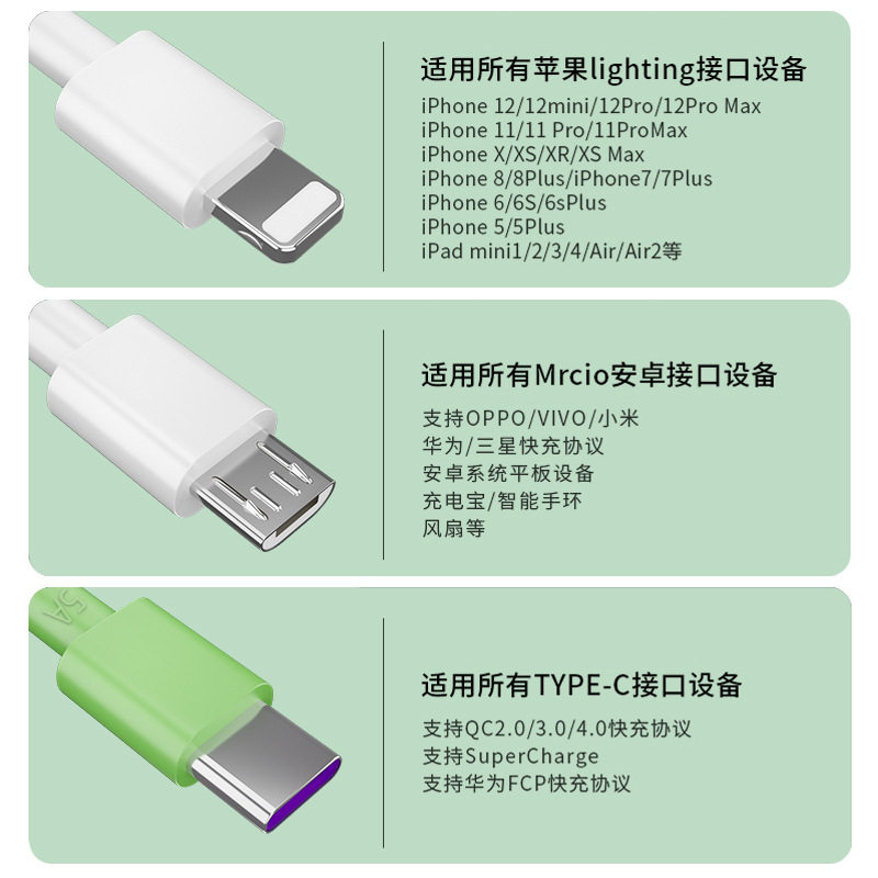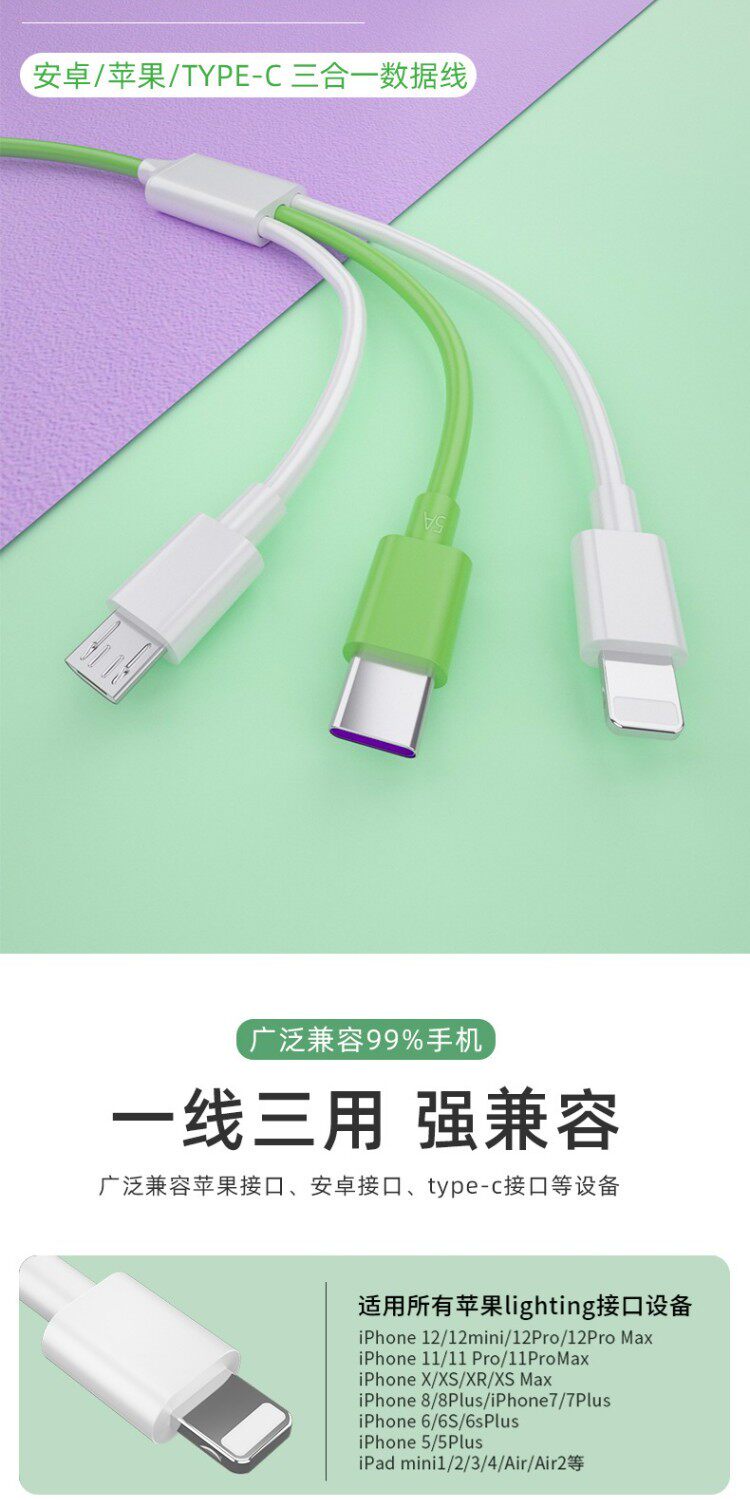 Apple, huawei, xiaomi, vivo, совместимый мобильный телефон, универсальный зарядный кабель, 5A, андроид, «три в одном»