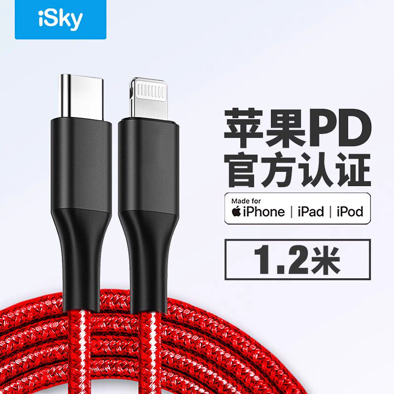 ISKY Data Cable подходит для Apple 13 Certified MFI PD Fast Charge iPhone14promax/13Mini12/XR/XSMAX/8PLUS/7PLUS Зарядка кабеля