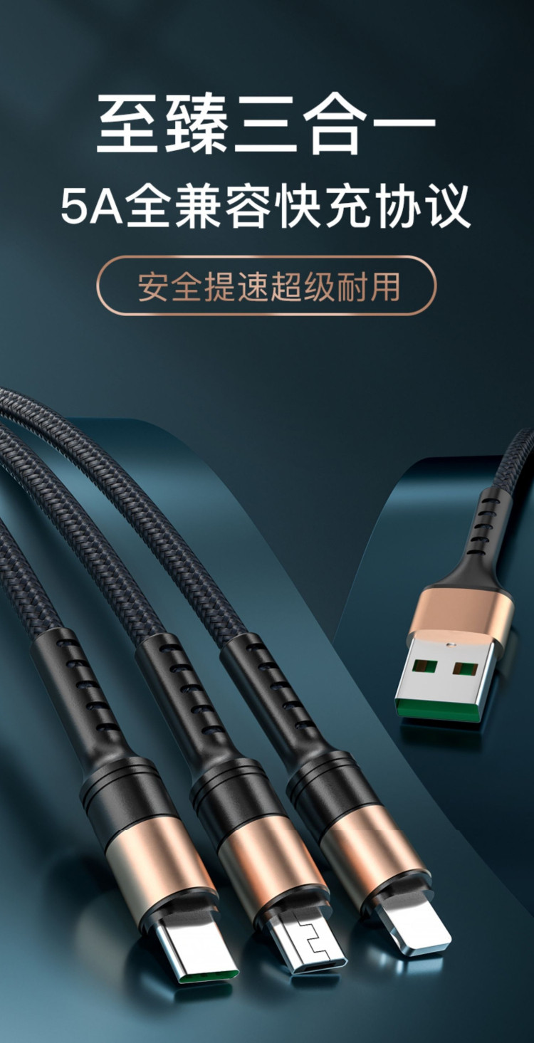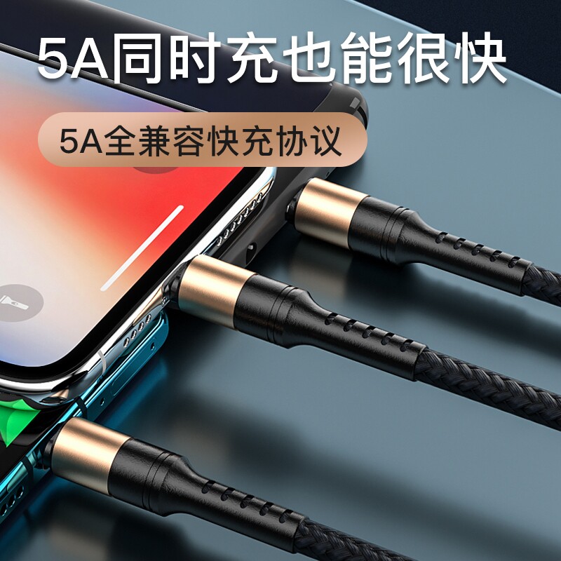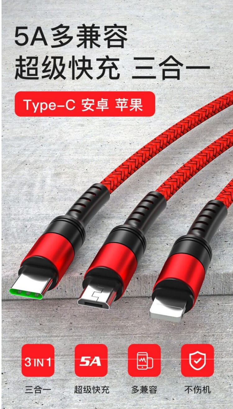 Huawei, apple, совместимый зарядный кабель, мобильный телефон, 5A, «три в одном», андроид