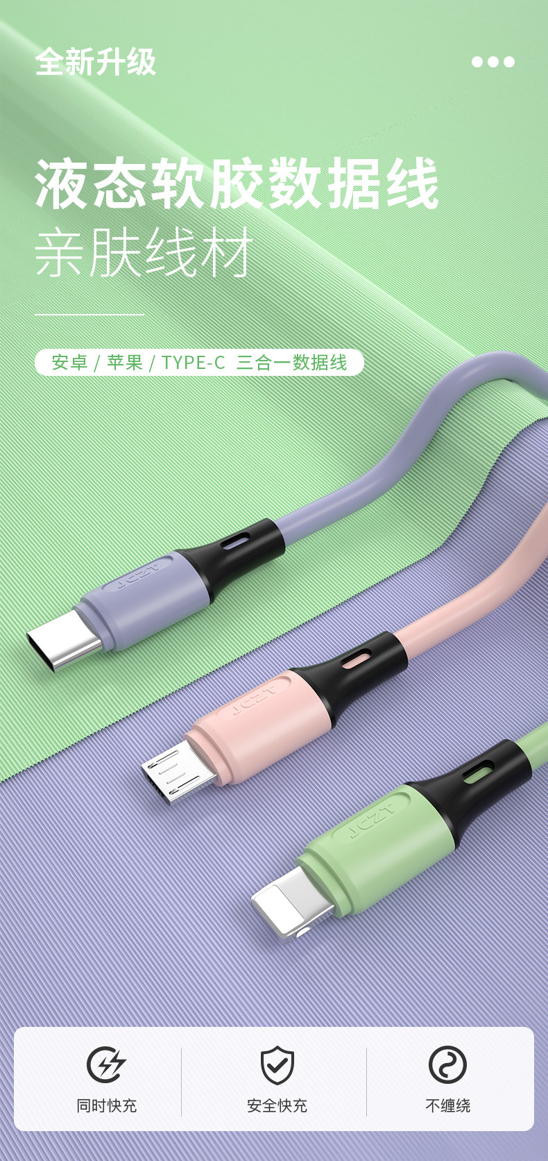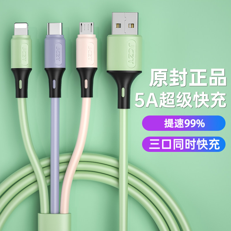 北克 Кабель данных Sanhe-One One Trang Trasting Three Line Lique Liquid Liquid Soft Glue Three-Head Multifunt Charging Cable 6a Super быстрое заполнение, подходящее для Apple Android Type-C Huawei 5a Car One Trag Three